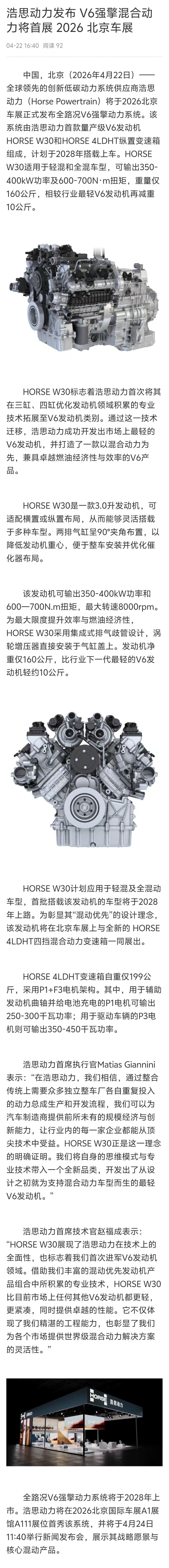 浩思把V6动力的发动机和混动变速箱技术细节都爆料了,2028年量产上市