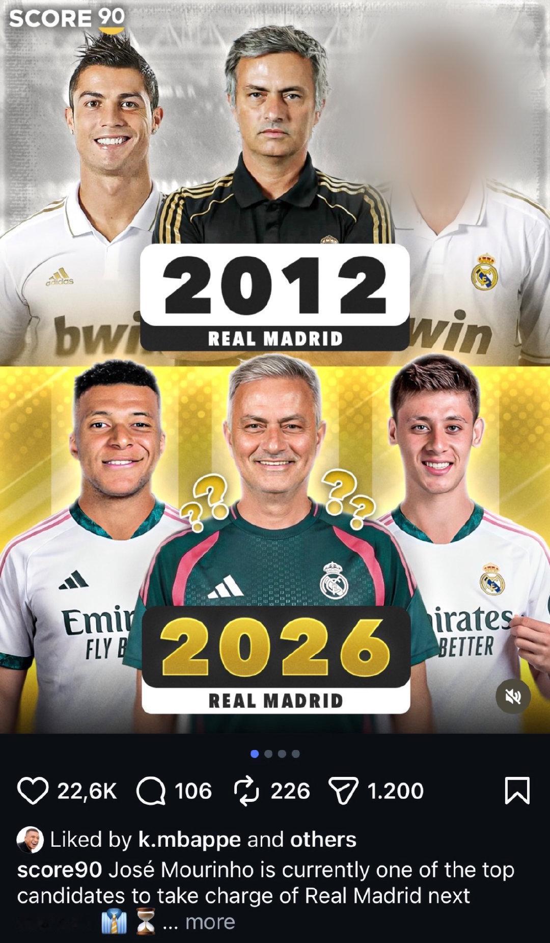 我晕,姆巴佩还真的点赞“穆里尼奥时隔14年将要重新执教皇马”的推文。很明显,皇马 【5评论】【3点赞】 皇家马德里 姆巴佩 何塞·穆里尼奥 鲁伊·科斯塔 国际当红足球明星 西甲 穆里尼奥主义者 2026-04-23