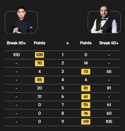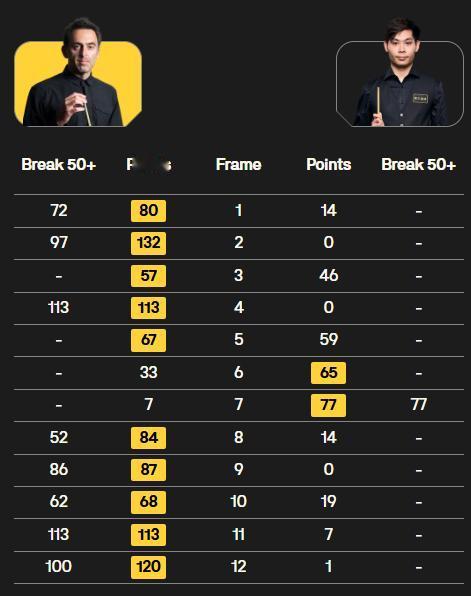 斯诺克世锦赛一夜战报! 斯佳辉3-6落后,惨遭五连鞭,濒临出局! 奥沙利文10-2过关! 北京时间4月23日,斯诺克世锦赛首轮的角逐。 ①奥沙利文10-2贺国强。 第一阶段的奥沙利文保持优异的竞技水准,开场显示五连鞭做好铺垫,接连轰出单杆50+和破百,准度高且稳定,轻松取得7-2的领先。国强的调整一般,或许是过于紧张的原因,未能打出应有的水准,给到不少机会,却自己都把握不住,如此一来就无能为力,第二阶段回来又连丢三局,2-10惨遭淘汰。 ②斯佳辉-侯赛因·瓦菲。 斯佳辉第一阶段更快上手,单杆破百展现不错的手感,先下两局是做好铺垫,这段时间相当专注,防守还行,长台准度也在线。瓦菲第三局打出单杆65分扳回一城,上半场战罢1-3落后。 比赛下半场变幻莫测,瓦菲持续提升状态,攻防两端都得更为严密,准度高且连接流畅,直接五连鞭反超,从而6-3领先结束首阶段。斯佳辉突然“崩盘”,主要原因是白球的控制较差,出杆的选择不太理想,导致很难有后续,从而出现破绽,进攻上手机会也越来越少,期待他及时调整,希望能逆转晋级。