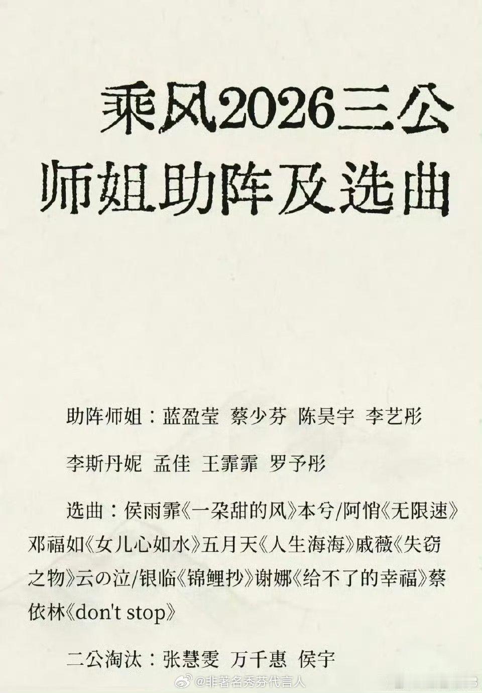 乘风2026三公助阵师姐名单怎么说?怎么感觉又是一代更多