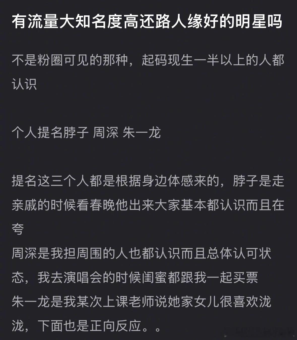 有流量大知名度高还路人缘好的明星吗?