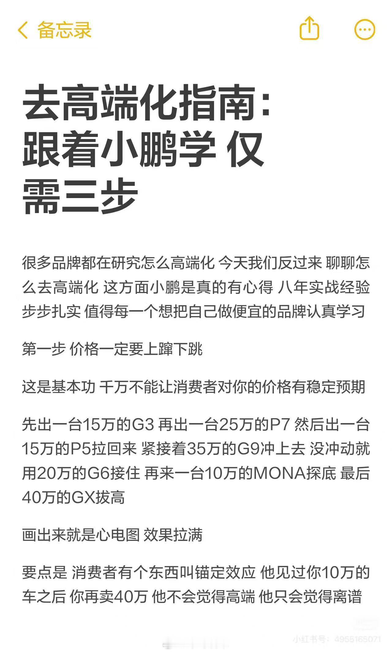 网友总结小鹏去高端化三部曲。巧妙地描绘了小鹏现状小鹏