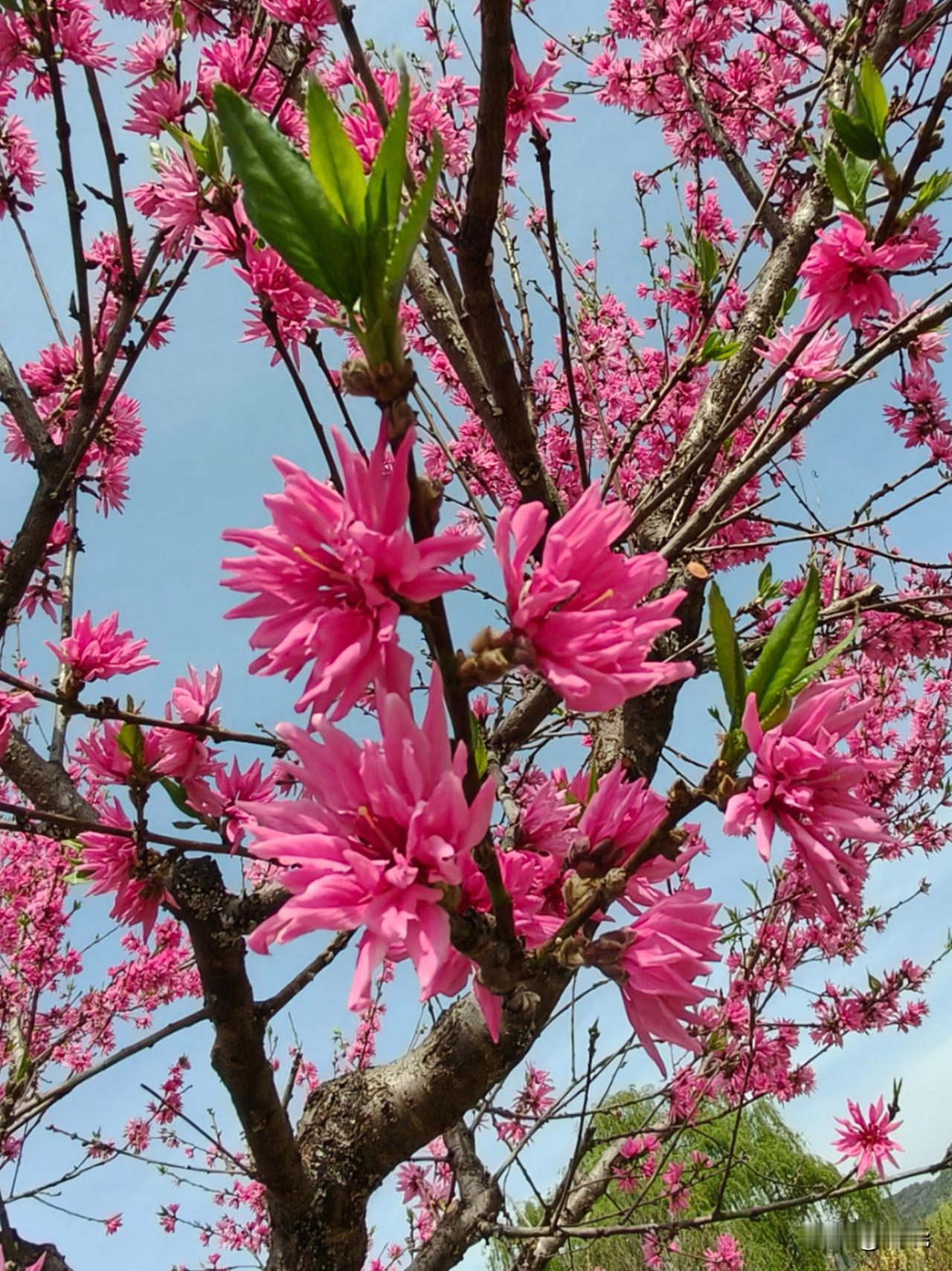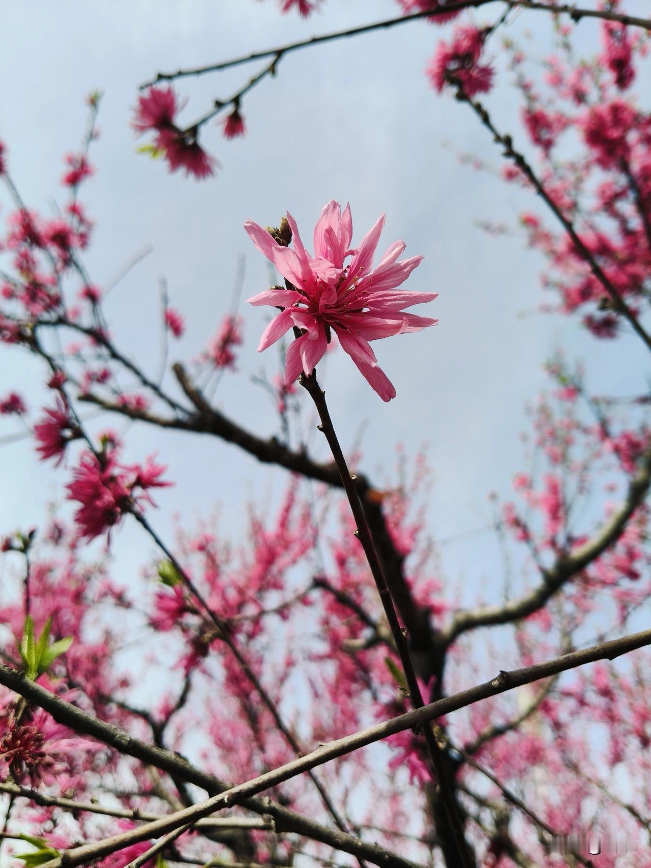 #每日赏花# 菊花桃 于平谷桃花园,我与菊花桃不期而遇。 它着实与众不同。 寻常桃花的花瓣是圆润的,而它的花瓣细长呈尖瓣状,宛如菊花一般。 菊花桃的身世: 菊花桃是桃的观赏变种,原产于中国清代,后来在国内失传。20世纪80年代中,它从日本被重新引种回国。 菊花桃花型独特,花瓣细长如丝、边缘翻卷,全然不像普通桃花,倒酷似菊花。 菊花桃花色艳丽,从粉红到玫红或绯红,盛开时灿若云霞。 菊花桃花期长,花量大。3 - 4月开花,盛花期约20天,满树繁花。 菊花桃株型优美,树冠紧凑,树形圆润。 菊花桃是观赏桃花里颜值极高、辨识度极强的明星品种。 菊之清雅与桃之艳丽融合,造就独一无二的春日花景。