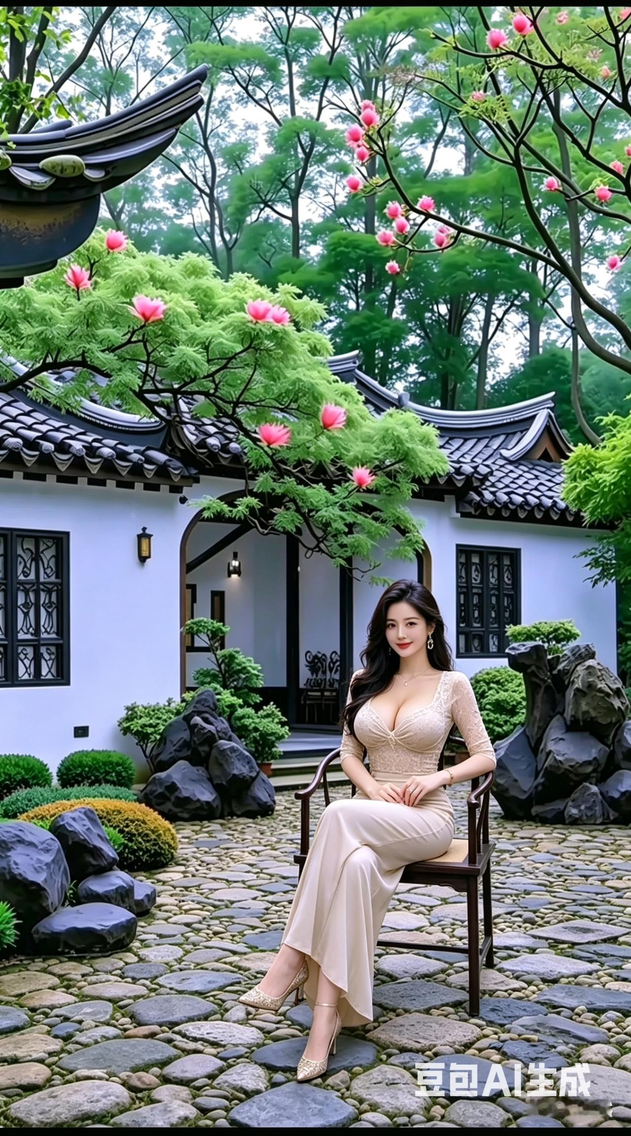 在这座古雅的小院里,一位气质独特的女士静静地坐着。她的容貌和穿着皆韵味十足。大家不禁好奇,她此刻心中在思索什么呢?是在回忆往昔,还是在憧憬未来?