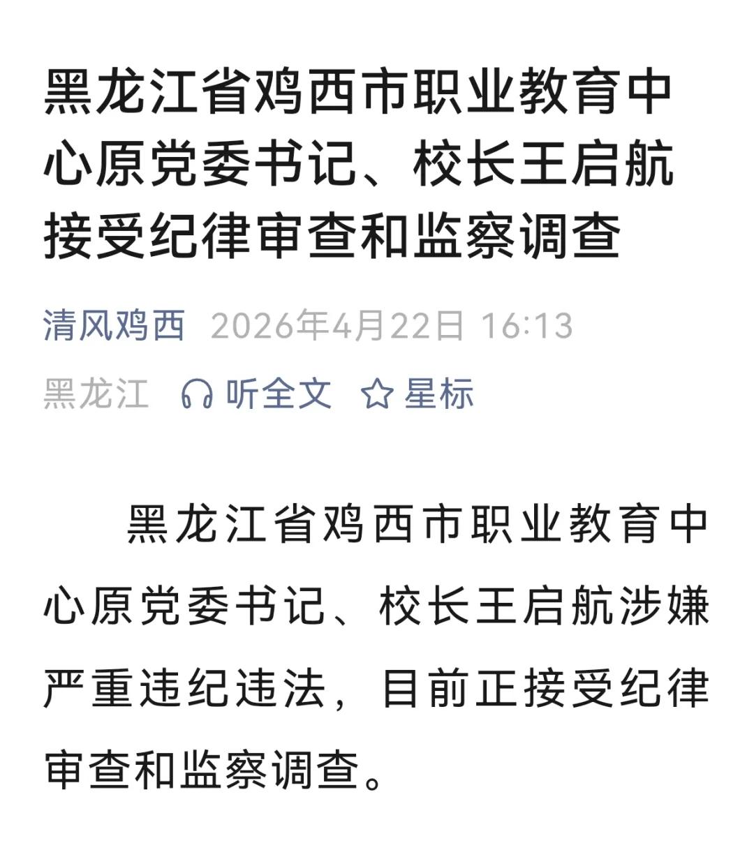 市文教战线标兵 省三育人先进个人 市专业技术拔尖人才 鸡西市名校长 黑龙江省骨干校长 省师德先进个人候选人 推荐参评全国优秀教育工作者 历任鸡西市教育局计财科长、鸡西四中校长、鸡西一中校长的鸡西市职业教育中心党委书记、校长王启航被查!