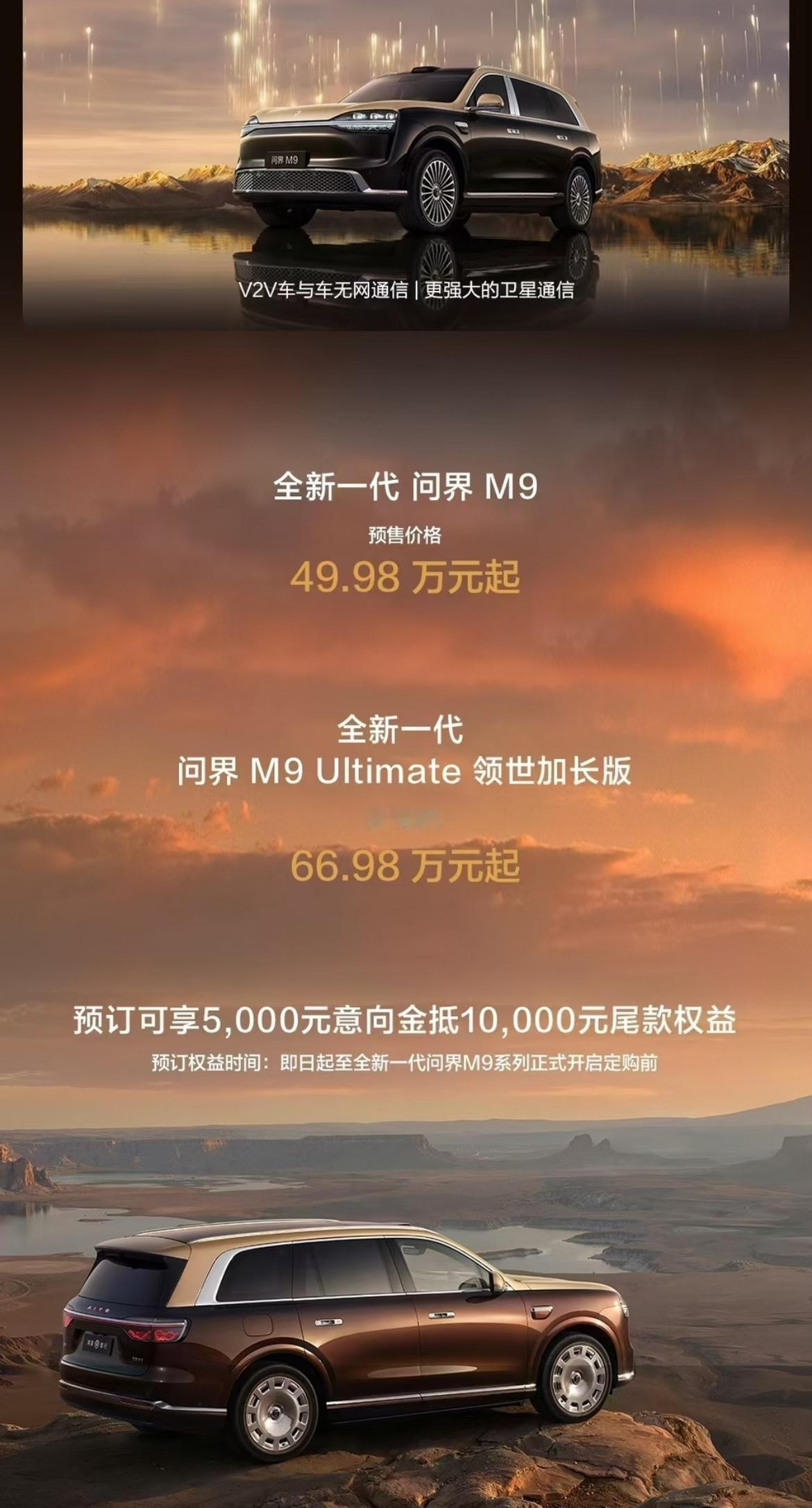 全新问界M9一小时订单11500台。 好吧,你真强,越高价越强! 令人瞩目的是车身做到5.4米以上的M9 Ultimate的领世加长版,这出来又是一个庞然大物,很明显对标的是5.36米蔚来ES9。 看似巅峰对决,实际上两个品牌的车主定位完全不是一样,甚至都没有交集。M9的车主的车主定位就不说了,说了容易被攻击,说一说蔚来的车主。就从咱们身边的人说起,蔚来品牌的车主基本只有一个类型,那就是金领和白领精英人群,高学历、高认知、年轻精英,有独立的思想和追求卓越的生活与工作方式…… 目前达到5.3米以上的旗舰SUV共有三款:仰望U8L代表了中国汽车制造的全新高度,是中国辆车SUV的天花板和旗帜;ES9是全自主研发和设计的标杆,辨识度明显,代表了新势力的全新高度和审美标准;M9是“老登”们的最爱,爱智驾、爱华为,我就爱为情怀买单。