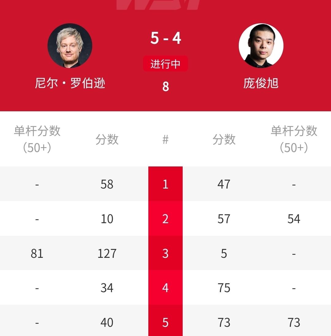 世锦赛战报:10-2、10-2,7届世锦赛冠军奥沙利文、4届世锦赛冠军塞尔比横扫冲冠!4-5、3-6,庞俊旭斯佳辉暂时落后!刚刚结束的2026年斯诺克世锦赛第一轮的第一阶段争夺中,曾经获得年度最佳新秀的中国选手庞俊旭,对轰80后第一位大满贯得主“墨尔本机器”尼尔-罗伯逊,他打出了挑战者应有的气势。此役,庞俊旭开局以0-1、1-2落后的情况下展开强势发力,3-2反超比分。之后又在3-5落后的情况下,凭借单杆122分,在第一阶段仅以4-5落后。相比而言,曾经打进世锦赛四强的斯佳辉,有些让人失望,他在单杆100分开局的情况下,第一阶段竟然以3-6落后瓦菲-阿尤里,想要晋级,第二阶段必须大爆发。这个比赛日的另外两场比赛,都是以10-2横扫结束。在7届世锦赛冠军“火箭”罗尼-奥沙利文与国强的第二阶段,他以总比分10-2强势晋级。而4届世锦赛冠军“磨王”马克-塞尔比与与世锦赛亚军杰克-琼斯的比赛中,同样以10-2横扫晋级。今晚和明天凌晨,斯佳辉与庞俊旭继续出战,他们能够在第二阶段逆转吗?期待着!奥沙利文 塞尔比