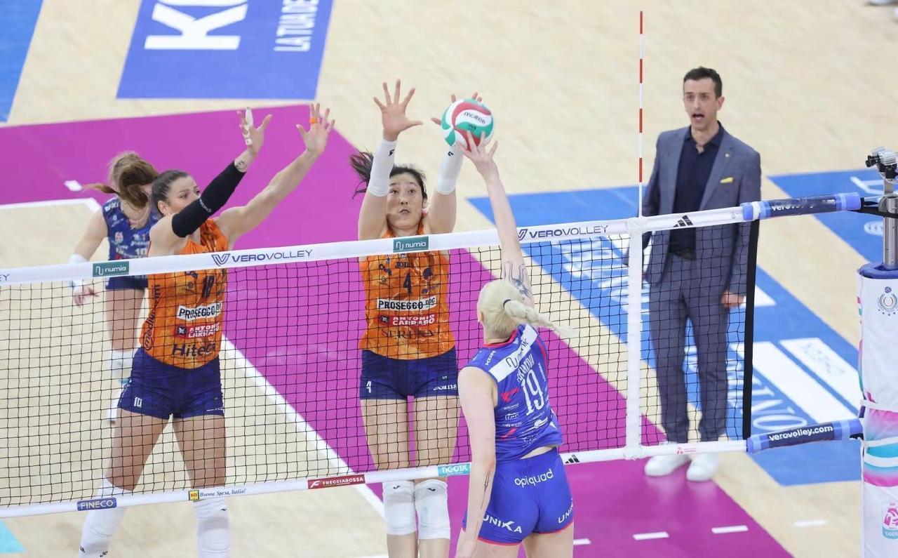 朱婷4扣3中状态这么好,被换下真是可惜了!北京时间4/23凌晨,意甲女排联赛决赛第四回合的强强对话中,科内以3-0轻取米兰,场分3-1对手获得赛季第二冠,朱婷职业生涯第二十六冠,恭喜!本场,朱婷获得首发出场,进攻4中3,没有失误被拦,双率75%,状态非常好,可惜被主帅桑塔雷利早早地换下了,队友哈克35扣18中3失误0被拦,1发19分,加比24扣11中0失误1被拦,11分,哈克比加比表现更好,荣获MVP,对手米兰有两人得分上双,艾格努49扣24中5失误0被拦,24分,表现出色,但即便是得分王也是一人难救主,拉内尔13分。一项重要环节的数据方面,科内三局自失11-24比对手少了13个,这是科内获胜的主要原因。科内下一场比赛是5月2日晚22点对阵瓦基弗银行的欧冠半决赛,祝福朱婷好运!