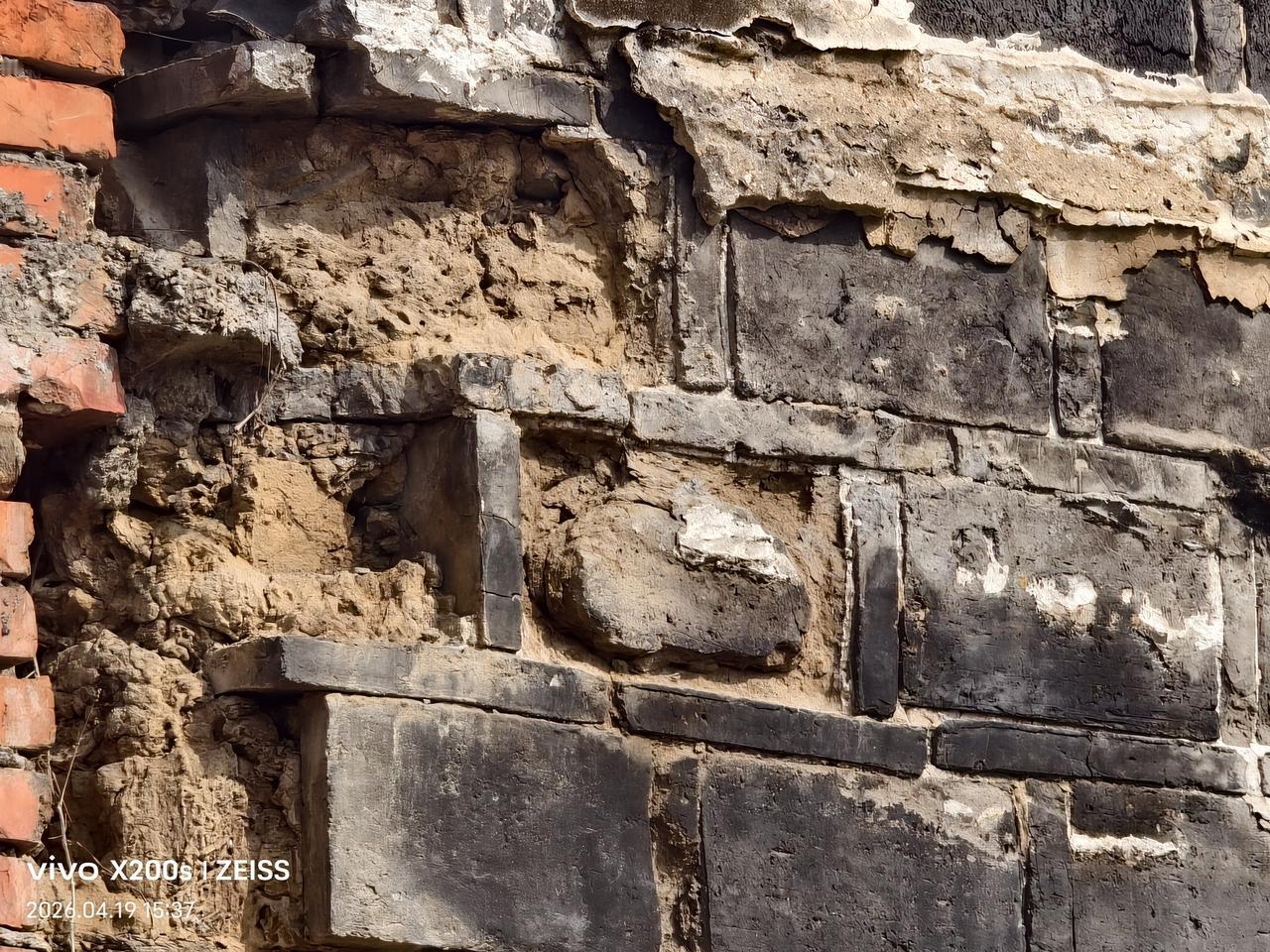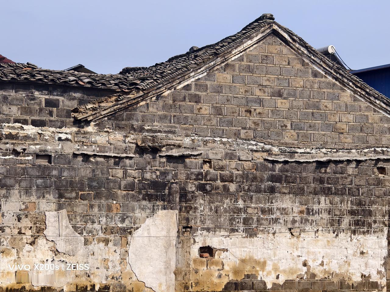 晒图笔记大赛老街古房空心墙:下图是闲人爱动在一县城内手机拍摄的,很明显有着久远历史的老建筑,当时能住上这类空心墙的应该算是一个大户,空心墙内还装有泥土,既节约了墙体的用砖量,还促进墙体的稳固性,这也是人类智慧的体现。