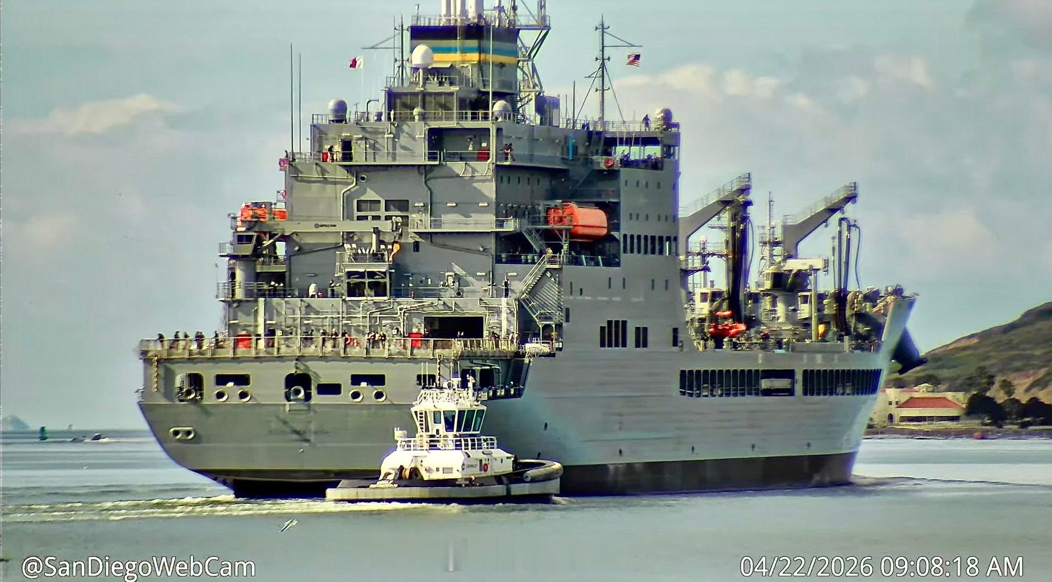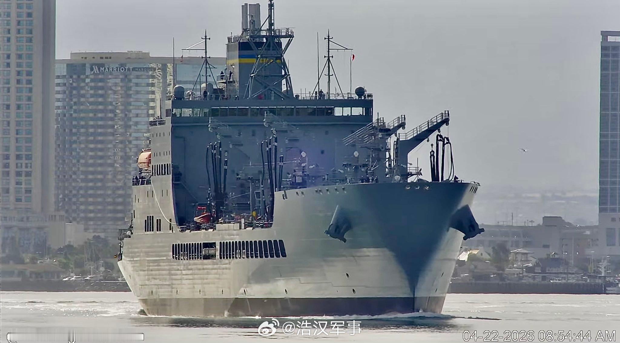 全球武器装备盘点每天认识一件兵器烽火问鼎计划 美国海军“索杰纳·特鲁斯”号(T-AO-210)约翰·刘易斯级补给油船于 2026 年 4 月 22 日离开圣地亚哥,前往进行初始建造商海试。