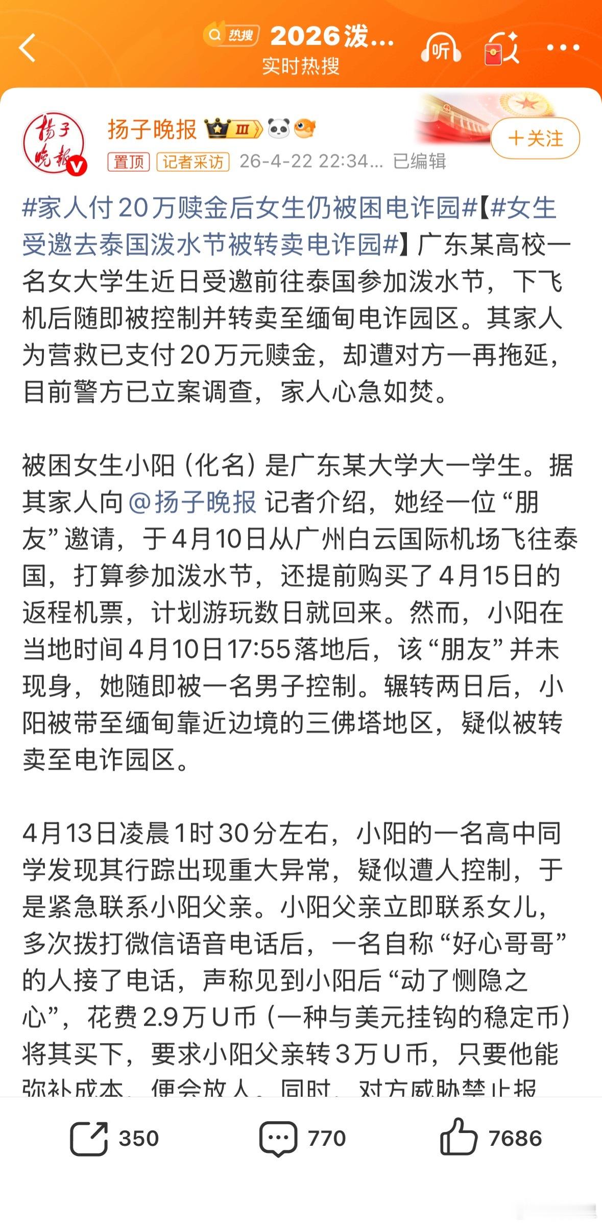 女生受邀去泰国泼水节被转卖电诈园泰国,是电诈园的中转站。之前就提醒过了,别去泰国玩。甭管是否有安全的玩法,会被做中转站的国家都不应该被营销成旅游胜地。君子不立危墙之下,危险国家别沾。