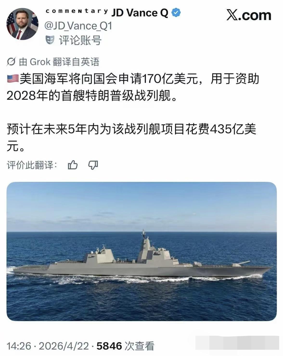 美国副总统万斯刚刚放话,要申请170亿美元,开建首艘“特朗普级战列舰”,五年之内更是要砸435亿美元。 网友直接喊话:说好的建就赶紧建,别又拿PPT画大饼,骗完纳税人钱就不了了之! 美国海军这些年早已臭名昭著,福特级航母一拖再拖、濒海战斗舰问题缠身,个个项目天价超支,实际战斗力却拉胯至极。大把军费进了军工复合体腰包,军舰没见几艘,烂账倒是一堆。 如今重提战列舰,本就在现代海战中极度鸡肋,面对反舰导弹简直是移动活靶子,实战意义存疑。特朗普嘴里的这款三万吨巨舰,不过是为自己造势博眼球,顶多让军工复合体赚得盆满钵满。 别再搞虚头巴脑的宣传,别再玩延期超支的套路。435亿美元可不是小数目,特朗普张嘴就来,万斯也跟着瞎扯淡。这回咱们倒要看看,特朗普级战列舰,到底是实打实的造出来,还是一场政治秀,PPT画大饼。 美国二当家万斯 特朗普造舰计划