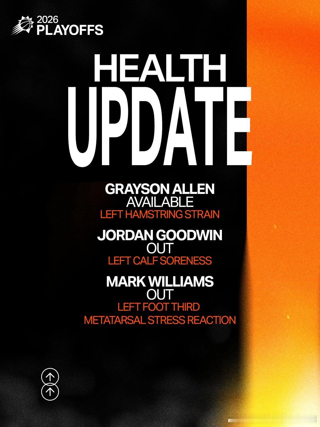菲尼克斯太阳 伤病更新:阿伦复出,古德温、马威缺阵今天比赛