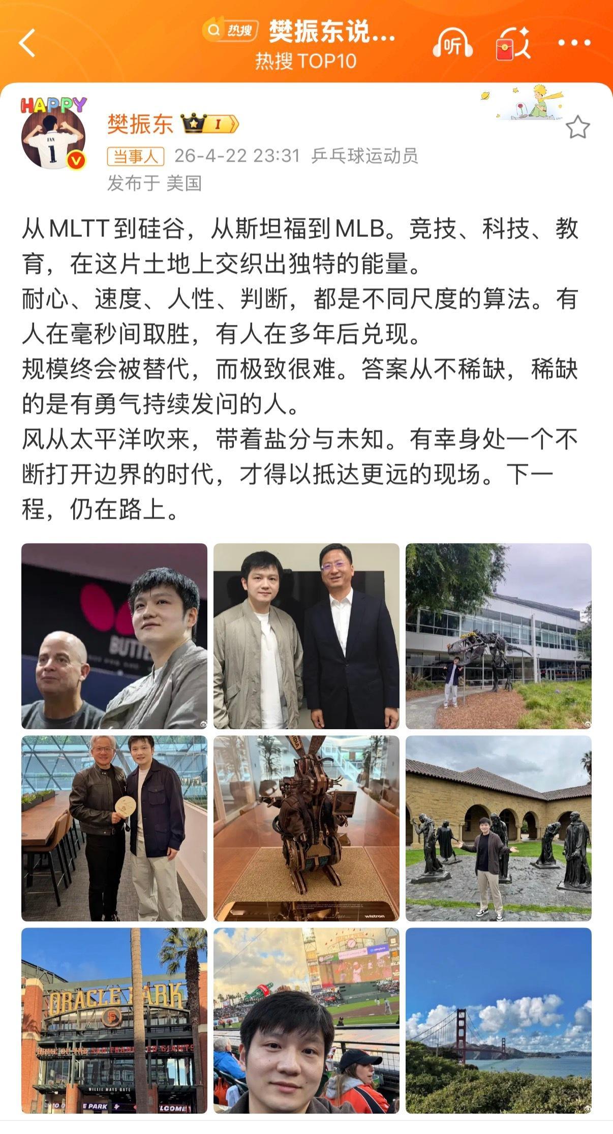 樊振东说仍在路上格局、深度、眼界……全部都在樊振东的文字里