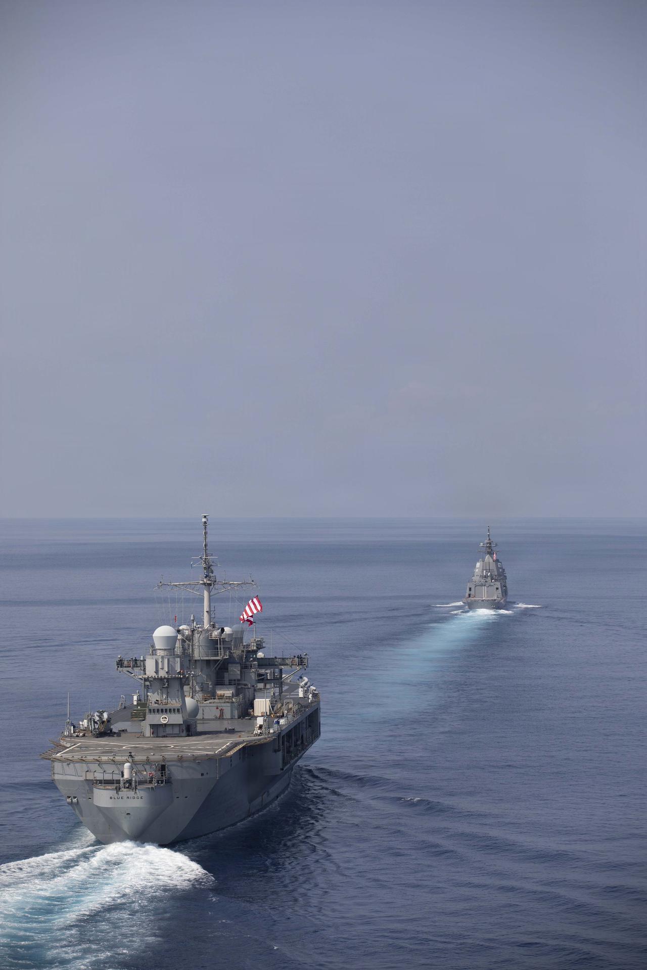 美国海军官方账号发布了三幅照片,说美国军舰“与伙伴同框”,照片是日本海上自卫队“朝日” 号(DD-119)与美国第七舰队旗舰 “蓝岭” 号(LCC19)在南海开展双边演习期间进行编队航行的照片。第七舰队是认为是美国海军规模最大的前沿部署编号舰队,美海军声称,他们定期与盟友及伙伴开展互动和行动是为了“维护自由开放的印太地区”。资料显示,第七舰队的主要驻扎基地大多在日本,大约有50-70艘舰艇和潜艇,还有约150 架飞机和 27000 多名水兵/海军陆战队员,航母是乔治·华盛顿号。前不久,为了制服不听话的伊朗人,美国防部就是从日本基地调派海军陆战队前往霍尔木兹海峡的。 自称为“美国最后的堡垒”的加里·纳班(Gary P. Nabhan)狂言:“下一场战争将在那里发生,美国离准备好对抗中国还差得远,所以最好赶紧准备。”目前,两个好战的国家在亚太地区绑在一条船上,他们一个世界上唯一使用过原子弹的国家,另一个是世界上唯一尝过原子弹滋味的国家,在伊朗战争还未结束之际,他们沆瀣一气,正在连接南海和台海的海域发起了对中国主权的挑衅行动,并加快与菲律宾的三边联合海上行动,试图在特朗普可能的东大之行前展示他们的肌肉、以及他们阻止中国实现国家统一的决心。