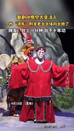 婺剧孙悟空大变活人,一秒“消失”附身老太太体内太绝了,网友:台上一分钟,台下十年功