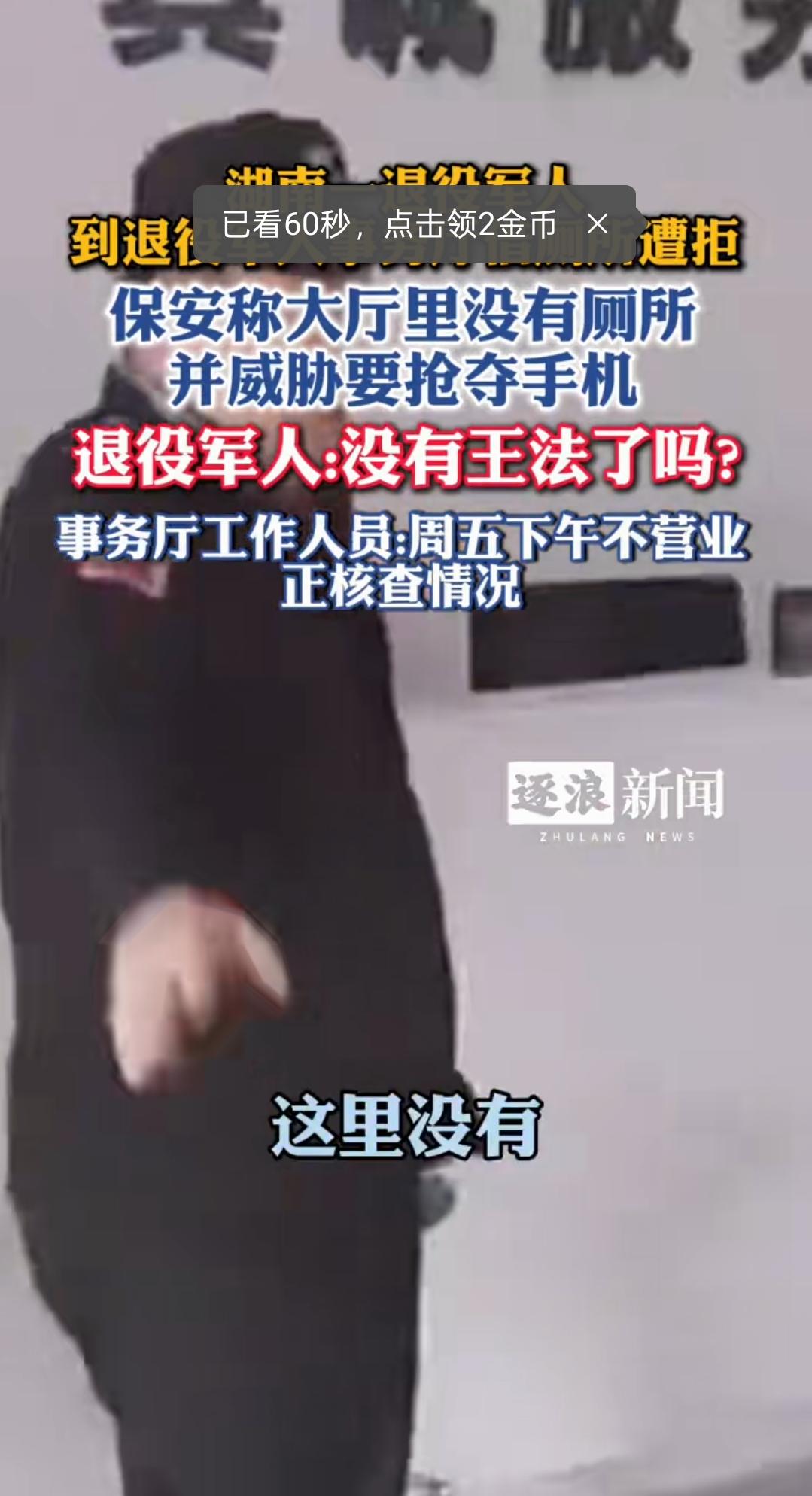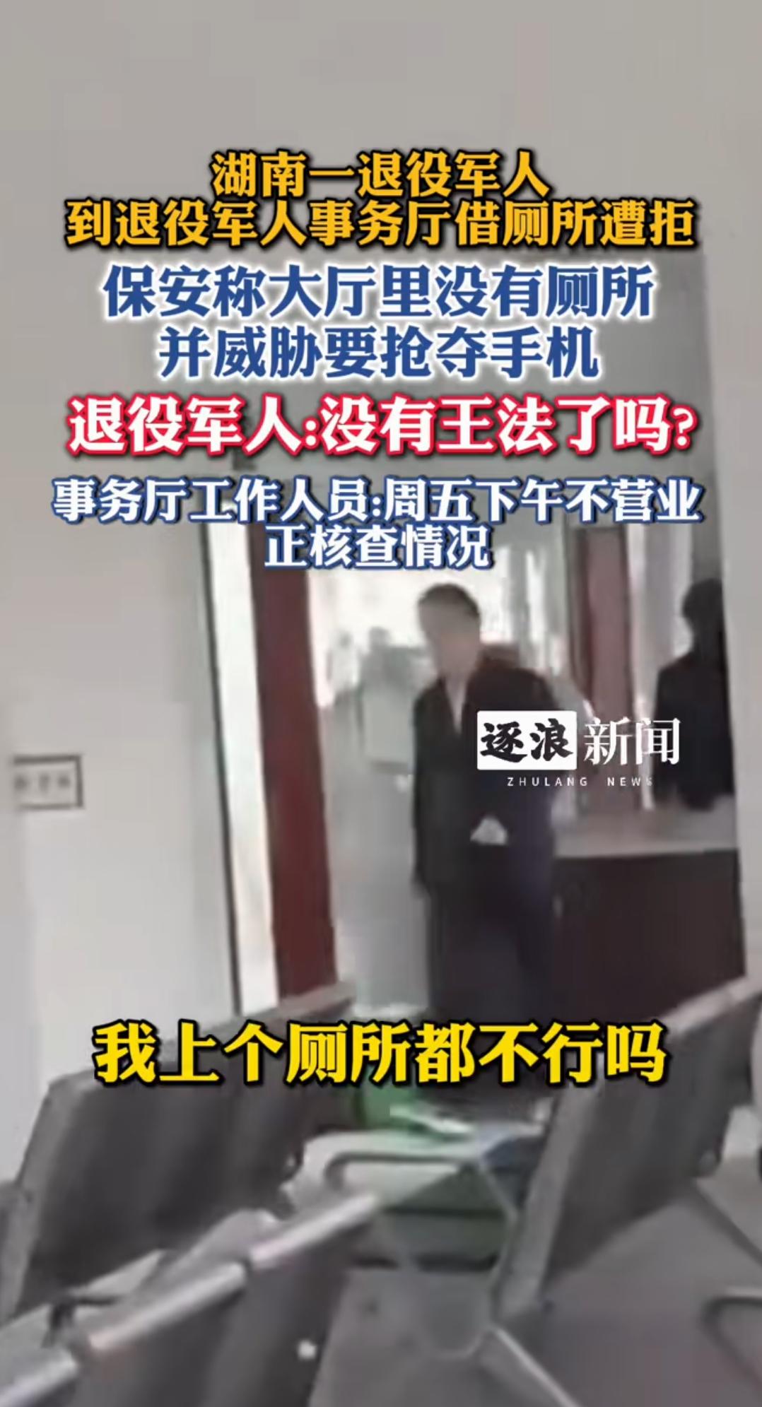 这几天,一位残疾老 兵在长沙某单位借用厕所被拒事件引发热议,但是有一个细节,可能很多人都忽略了。 视频中,一位残疾老兵在长沙某单位想借用一下厕所,没想到保安以“没上班”为由严词拒绝。 老兵觉得自己受到不公正对待,就打开手机录像,没想到保安不仅不允许这位老兵借用厕所,而且还上前抢夺手机,确实有些过分。 在这期间,画面中疑似该单位的一位工作人员说,“可以让老兵进去”。但是,保安依然“坚持原则”。 说话的这位男子是什么身份,目前没有得到更确切的信息,有网友认为从其穿着看,有点像这家单位的领导,至少是该单位的工作人员。 有网友认为,不管该男子在这家单位是什么身份,就这简简单单的一句话,保住了自己,也保住了单位。 但即便如此,很多网友还是有三个疑问。 首先,既然有单位工作人员开口说话,表示“可以让老兵进去”,为什么保安还要固执己见,何来的底气? 其次,保安的做法明显失当,这位工作人员为什么没有当场制止并纠正。 最后,保安的做法不符合社会道德规范,也有损单位形象,但是责任仅仅在保安吗? 这件事你怎么看,欢迎到评论区聊聊!