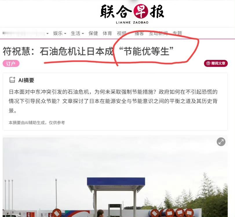若按照该媒体的逻辑,那日本不仅是“石油节能优等生”,他们在蔬菜水果等方面,因本土产量低、价格高,国民吃不起,同样能被称作“吃饭节能优等生”。 当然,日本超95%的石油进口能源都来自中东地区,现如今并非它想不想“节能”,而是现在石油能源输入突然中断,其国内的石油储备已经捉襟见肘了。 有,你节能使用是一种“节能”。储存快没有了,你不得不少用或者不用,这种情况就别在找存在感了。