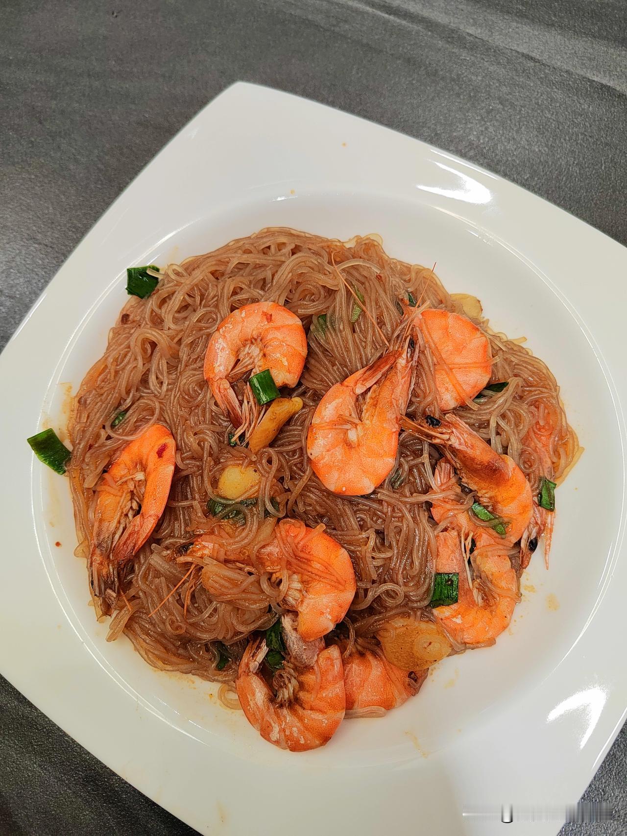 今日午餐,蒸金银二米饭,做了一道大菜,粉儿丝焖大虾。 这个季节的大虾,好吃!买时个个都活蹦乱跳的,25块钱一斤。 回家洗净,去掉虾头,挑出虾线儿,不到半个小时,一盘美味端上了桌。 尝了口粉丝儿,哇塞,好吃,有虾味儿!又吃了口虾肉,味道鲜美Q弹! 哈哈,没白忙活儿! 我是小人物,小生活,小确幸!日子一般般,吃好喝好,赛神仙![偷笑] [微风][微风][微风][微风][微风][微风]