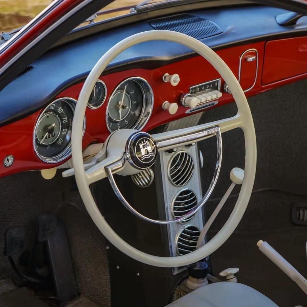 大众 Karmann Ghia.这台 1963 款大众 Karmann Ghia 轿跑,在被现任卖家收入囊中之前,已经完成过一次修复;而这辆车本身也像那个年代的审美缩影一样,把“优雅”和“亲民”这两个看似矛盾的词,安静地放在了同一台车上。Ruby Red 红色车漆、白边轮胎、银米色皮革内饰,再配上轮毂盖、带防撞角的保险杠和 AM 收音机,这些元素没有夸张的张扬感,却把 60 年代欧洲小跑车那种克制、体面、又带点浪漫气息的味道,完整保留下来。动力部分,它搭载一台 风冷 1.2 升水平对置四缸发动机,也就是约 1192 毫升,匹配 四速手动变速箱。放在今天,这样的数据并不猛烈,甚至可以说相当温和,但正因为它不追求性能堆砌,反而更让人回味那个汽车还带着“机械温度”的时代:转向、换挡、油门和发动机声浪之间,人与车之间的距离很近,驾驶不是单纯的速度竞争,而是一种很有参与感的生活方式。再加上前排安全带和空调这些配置,它也保留了那个年代开始向“日常可用”过渡的时代特征。Karmann Ghia 最迷人的地方,从来不是它有多快,而是它有多会“讲故事”。它身上有大众的可靠底子,也有卡门·吉亚的设计美感,像是一台把实用主义和情绪价值同时做到位的经典车。今天再看这台车,会发现它真正打动人的,并不是某个参数,而是那种很难复制的时代感:车身线条温柔、气质收敛、颜色克制,却又始终带着一种让人忍不住多看两眼的精致。对于很多人来说,这类老车最有魅力的地方就在这里——它不喧哗,但它足够让人心动。大众 经典情怀老车 汽车知识汽车人共创计划