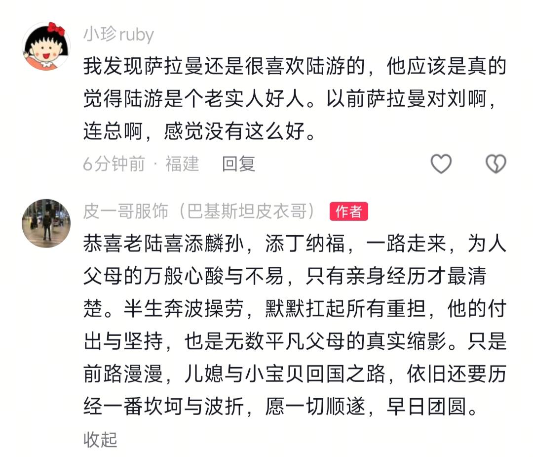看到丈母娘要保证书我忍了 看到老陆抢着出头我也忍了 可是看到刚当爹的小陆被嫌弃到当众抹眼泪,我实在忍不住了 谁懂啊?我真的要被最近刷到的这个跨国婚姻瓜整郁闷了!不留姑爷非要扣下亲家公?巴铁丈母娘一通操作,直接把刚当爹的小伙整哭了,我看完满脑子问号,不是吧?这都什么离谱事啊? 说实话,本来我以为就是网红去医院探望新生儿的日常,结果一开口,全是签证的拉扯。说真的,老陆本来想等孙子满三个月,自己先带娃回中国,让儿子小陆留下陪媳妇办签证,结果人家巴铁后妈当场就不信了,直言怕小陆走了就不回来。我晕,之前我就刷到过类似的事,男方带娃回国就再也没露面,换谁谁不犯嘀咕啊?然后舅妈也补了句,自家女儿前几年嫁去中国,手续都是一起办的,结果现在规则变了,娃的手续好搞,大人的签证难到崩溃。然后人家还要求签保证书,萨拉曼都说了,人不好,保证书有啥用?胡扯嘛这不是。 坦白说,老陆都赌咒发誓说儿子肯定会等媳妇,结果人家后妈直接来了个反转:让姑爷先回中国,亲家公老陆留下陪办签证,娃也得留下。不是吧?这操作谁能想到啊?可能是吧,人家就是觉得老陆更靠谱,毕竟给钱爽快,说话也算数。然后小陆当场就绷不住了,说自己和媳妇语言不通,连沟通都只能靠手机翻译,媳妇还总嫌他,当着众人的面直接抹眼泪走了。之前听人说,所有的隔阂,本质上都是缘起于没接住的安全感,现在看真的是这么回事。更绝的是,后面小陆媳妇自己都说,这个后妈是亲后妈,她自己都烦得很。 总之啊,我想说的是,麻溜的先把语言关过了,两口子的事别总让长辈往前冲,钱也别自己攥着,多让儿子去转交沟通,不然再好的缘分也得搞砸。毕竟感情这事儿,从来不是靠保证书就能稳的,你们觉得这里面谁的问题最大?皮一哥 皮衣哥