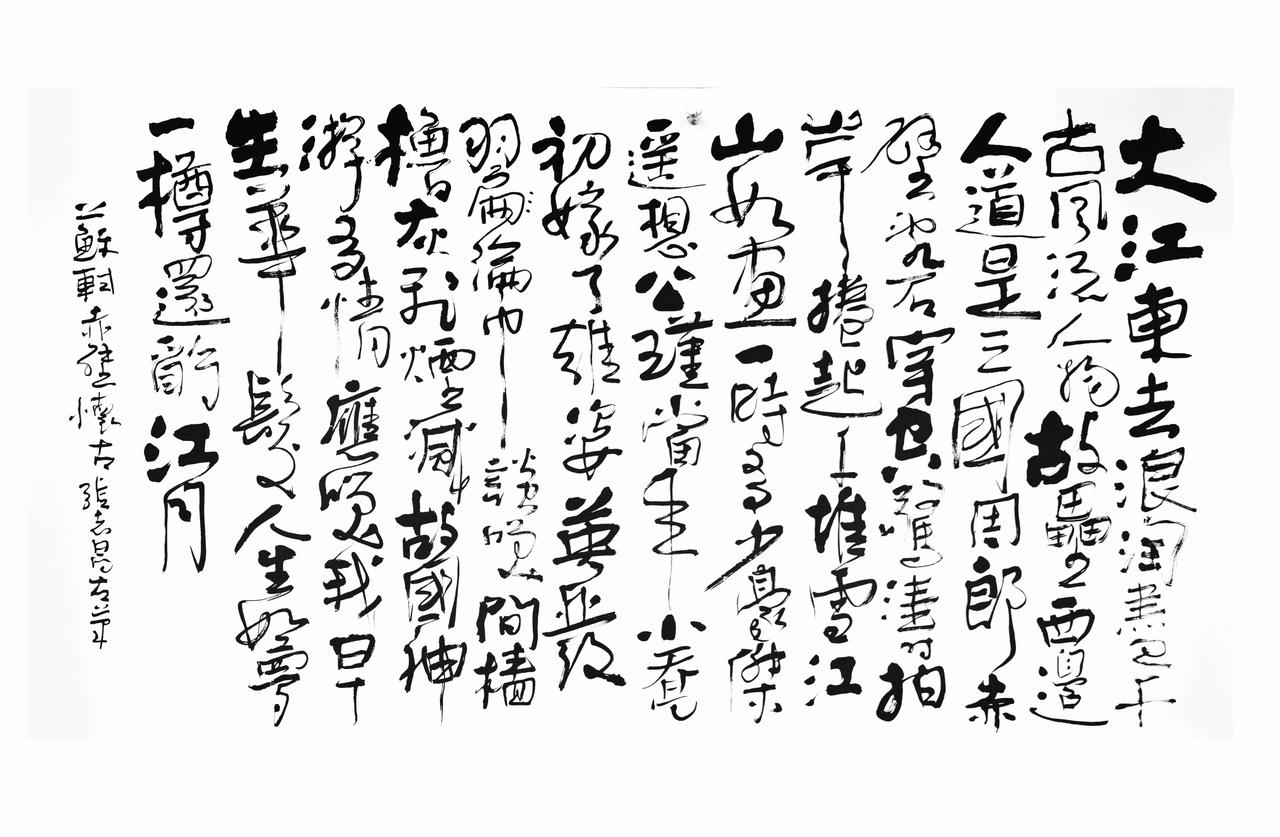 晒出你的书法作品,让大伙儿开开眼张志昌左笔书,苏东坡《赤壁怀古》(180x95)