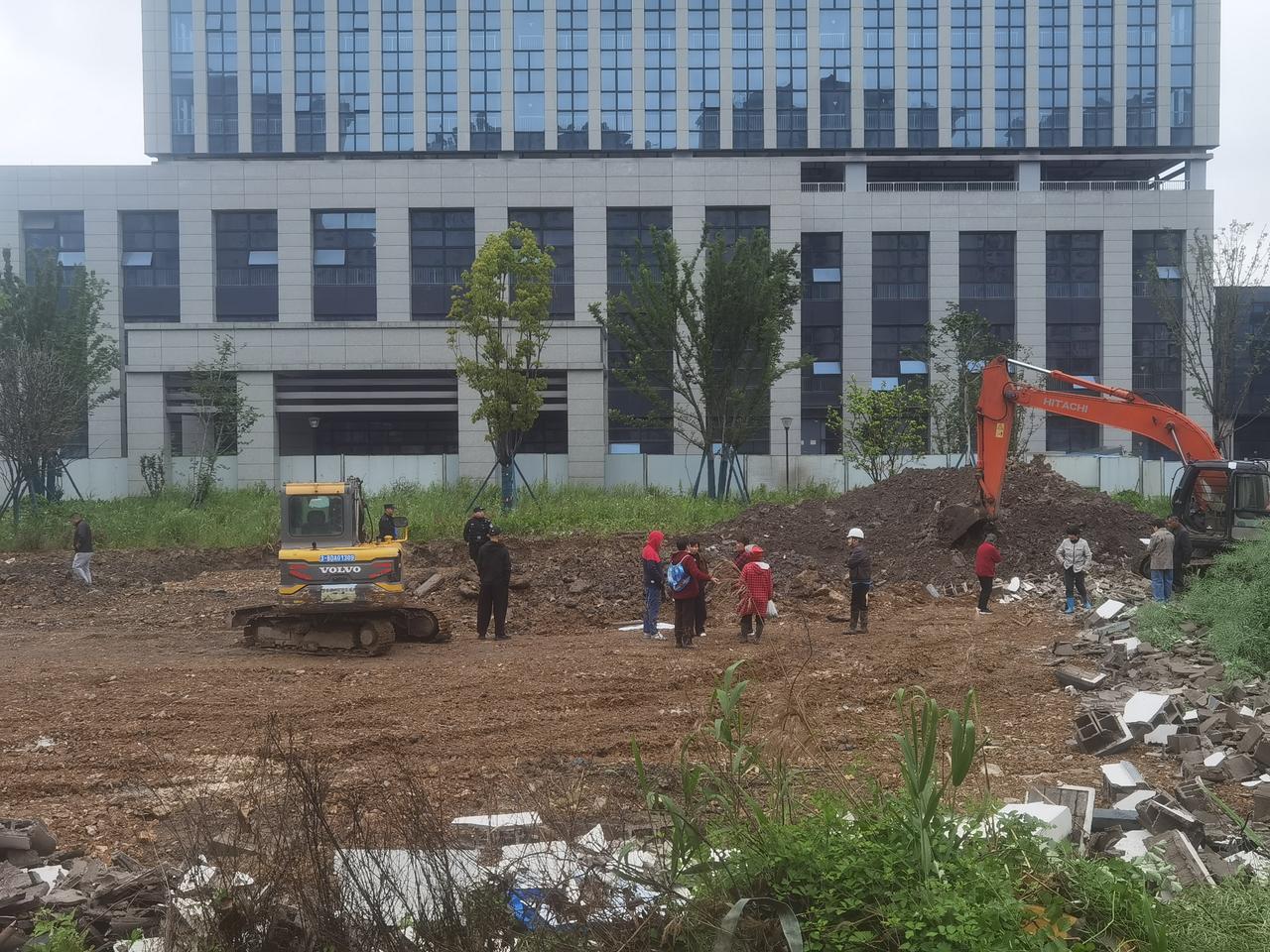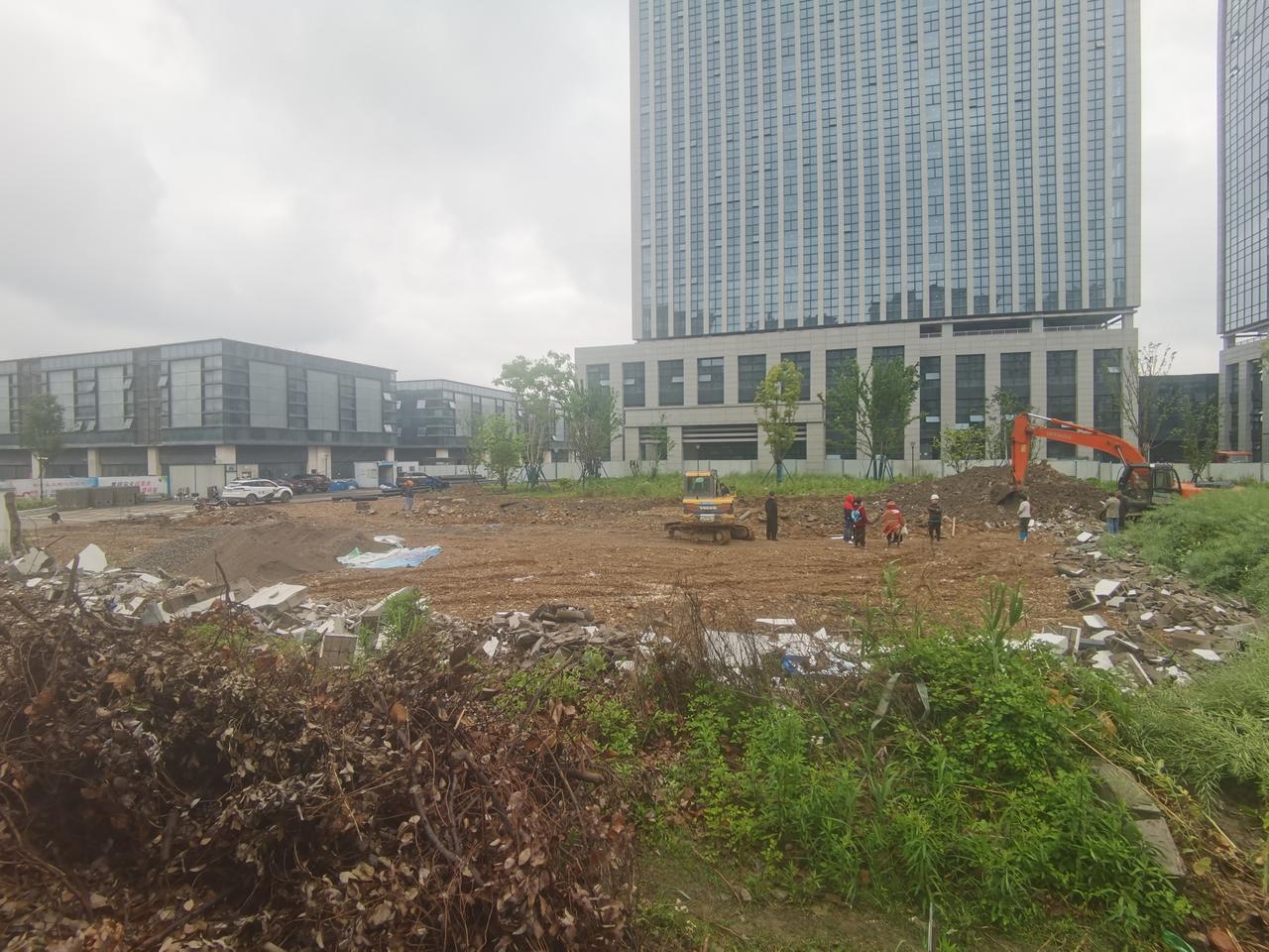 绍兴袍江安居城围墙推倒,估计要修新围墙,同时也整理围墙外的空地。