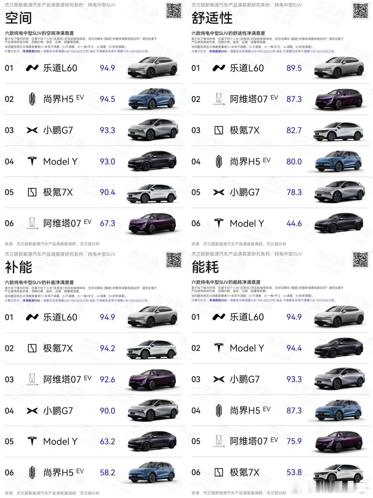 杰兰路发布纯电中型SUV车型满意度研究报告,乐道L60获产品净满意度第一,在空间、能耗、补能、舒适性四项重点产品体验维度位列分项第一。同期杰兰路保值率数据,采用租电方式购买的乐道L60保值率表现尤为亮眼,超越同级标杆Model Y。依托蔚来纯电技术累积,乐道L60综合产品力获得市场与用户口碑双验证。真实口碑加冕,乐道L60已然成为纯电中型SUV一步到位的首选。乐道汽车
