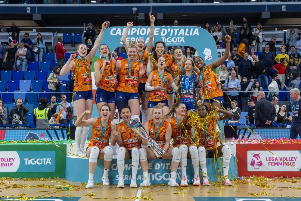 凌晨的排坛传来重磅喜讯! 科内利亚诺以3-1总比分击败米兰,拿下队史第九座意甲冠军,实现意甲八连冠伟业。 中国名将朱婷斩获生涯第26冠,本赛季她扣球成功率46.4%、效率39.5%,两项核心数据均位列所有主攻第一。 第四回合对决,朱婷首发出战一局多,进攻4扣3中,成功率高达75%,无失误无被拦,后排7次一传全部零失误。她不追求无谓刷分,而是精准扮演角色,用高质量发球和稳健保障为球队开局破局。 队友哈克全场19分当选MVP,米兰王牌埃格努空砍24分。科内利亚诺凭借严密拦防与关键分把控,全程掌控节奏,两度顶住对手反扑。 这是朱婷加盟科内两年来的第六座冠军,也是她职业生涯第26座桂冠。31岁的她依旧保持世界级水准,用实力续写传奇。 从赛场核心到稳健拼图,朱婷懂得适配与坚守。这份冠军,是实力的证明,更是对排球热爱的最好回响。