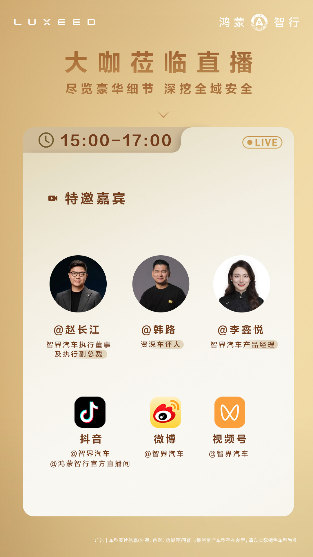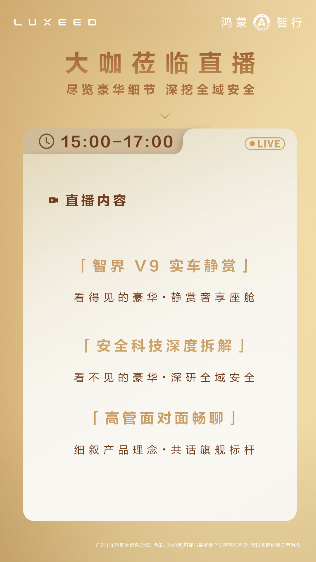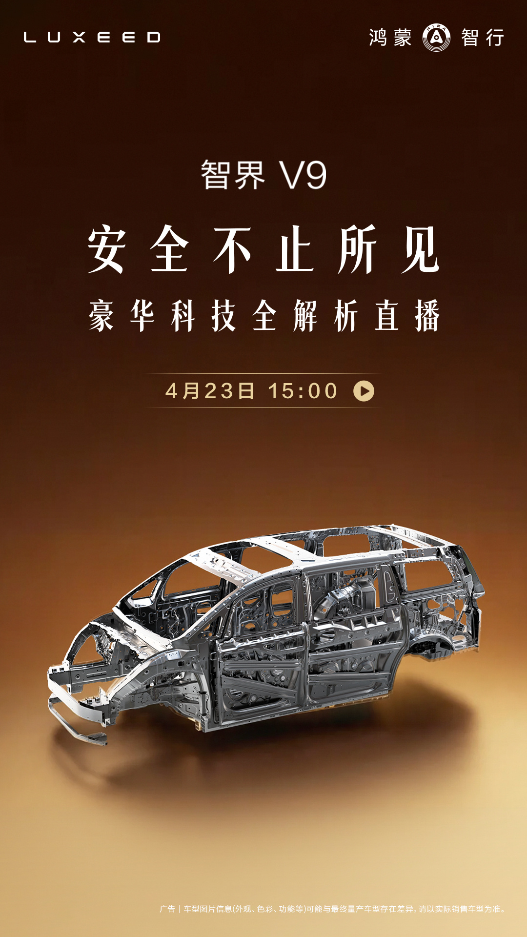 安全才是真正的豪华!4月23日15:00,锁定直播间,一同揭晓全景智慧旗舰MPV智界V9 。官方将逐帧解析智界V9那些看得见和看不见的豪华之处。看完直播你就知道什么叫安全远超所见!智界V9预售价39.98万起