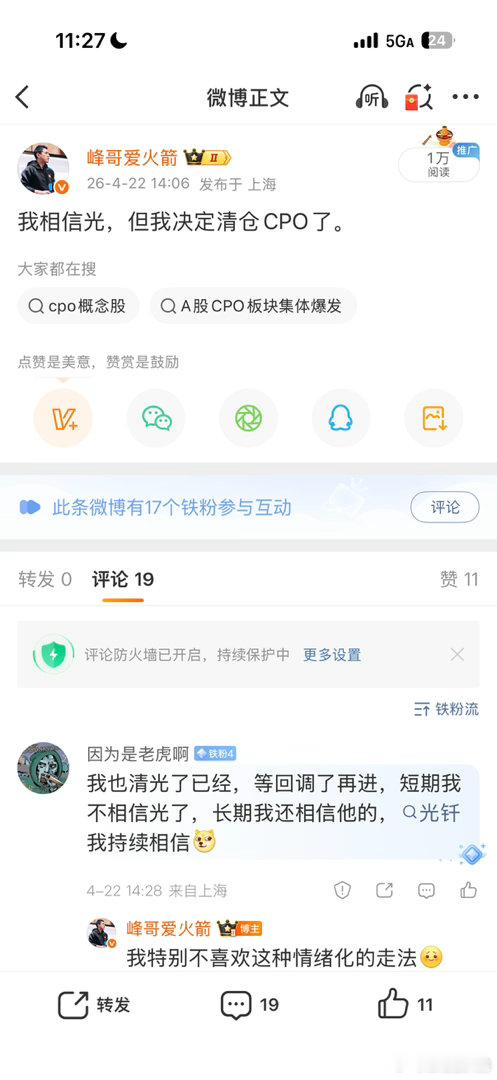 我昨天清仓了CPO,事实上我周一也清仓了英伟达。一方面系统出信号,但更重要的是,我不喜欢这种街头巷尾都在“你相信光吗”的讨论。