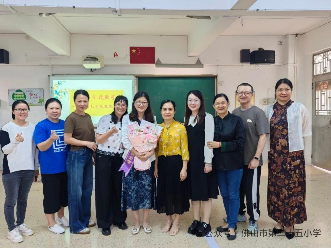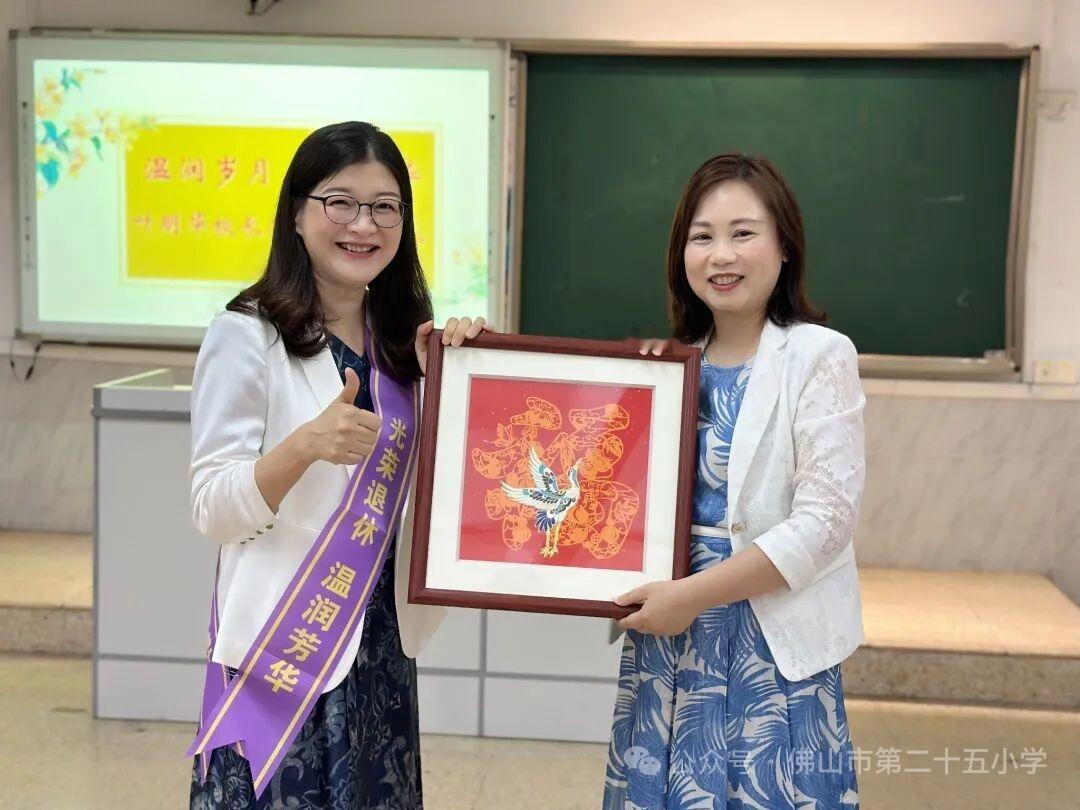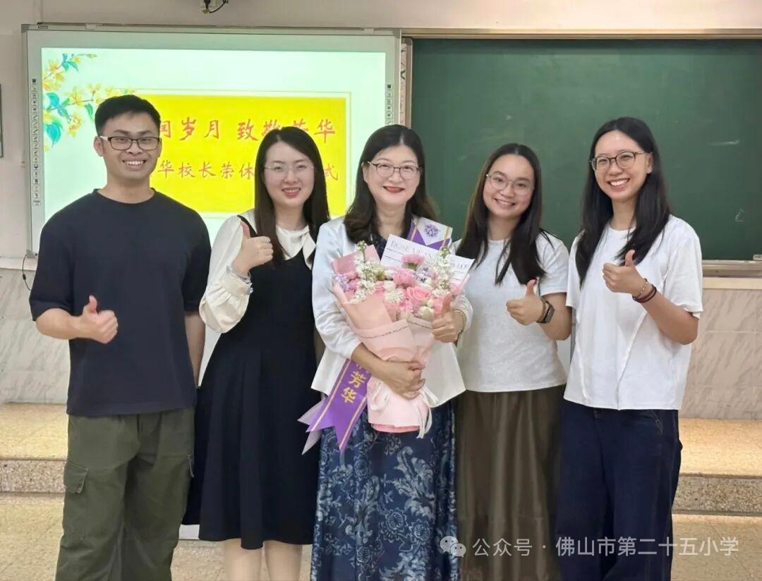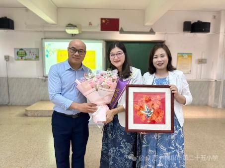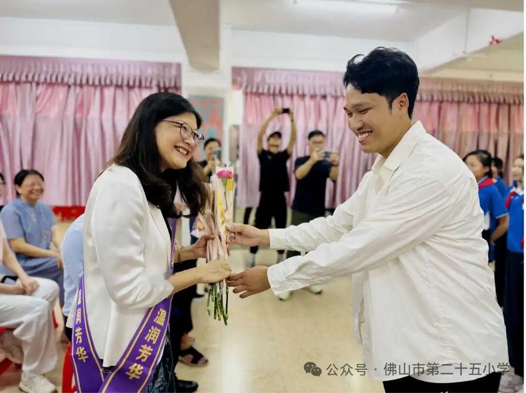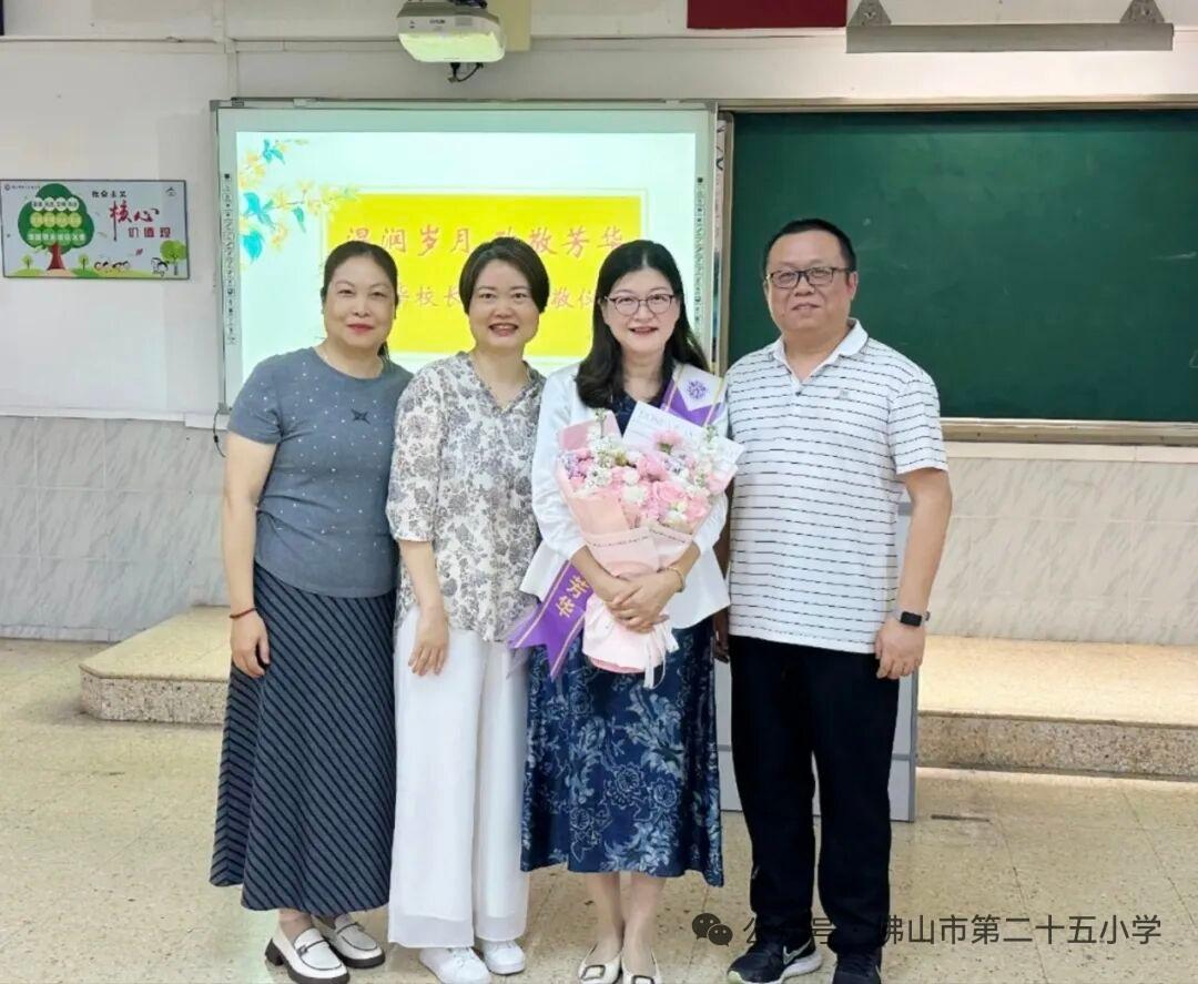 佛山二十五小叶明华校长荣休致敬仪式 3月31日举行,全体教职工欢迎叶明华校长到场, 学生代表为叶校长佩戴绶带,教师代表蔡凯萍老师追忆与叶校长的共事时光,邝碧霞校长送上最诚意的敬意和祝福,叶校长发表荣休感言。