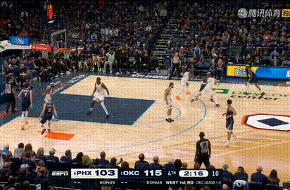 太阳顽强追分,分差来到10分!第四节太阳打出23-10太阳vs雷霆