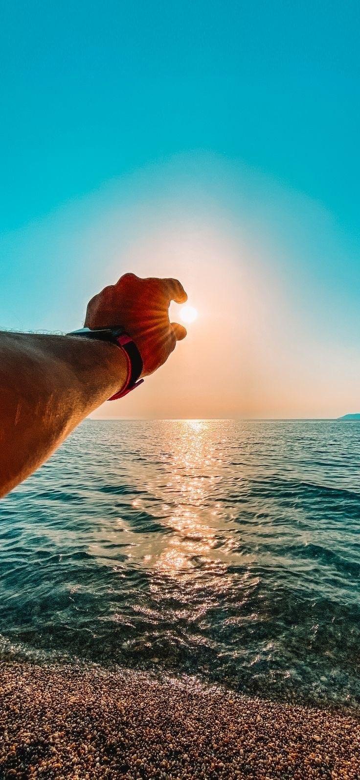 徐璐壁纸:海边随拍,蓝色甜美穿搭。徐璐