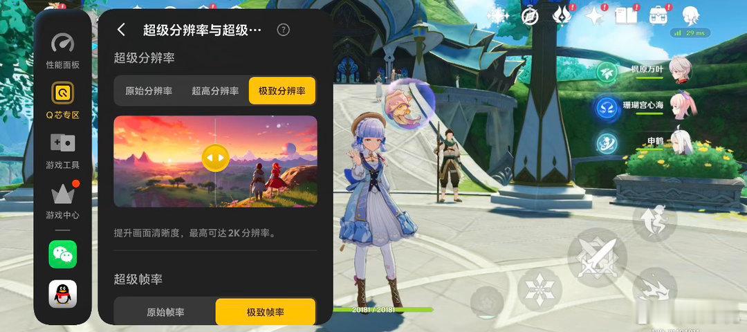 ✨ 超分画质+光追双buff开启超级分辨率后,画面细节直接拉到2K级!角色发丝、水面反光、场景光影都清晰到离谱,对比没开的画面,质感直接从“糊成一团”变成“端游级通透”,连原神的阴影细节都被拉出来了!