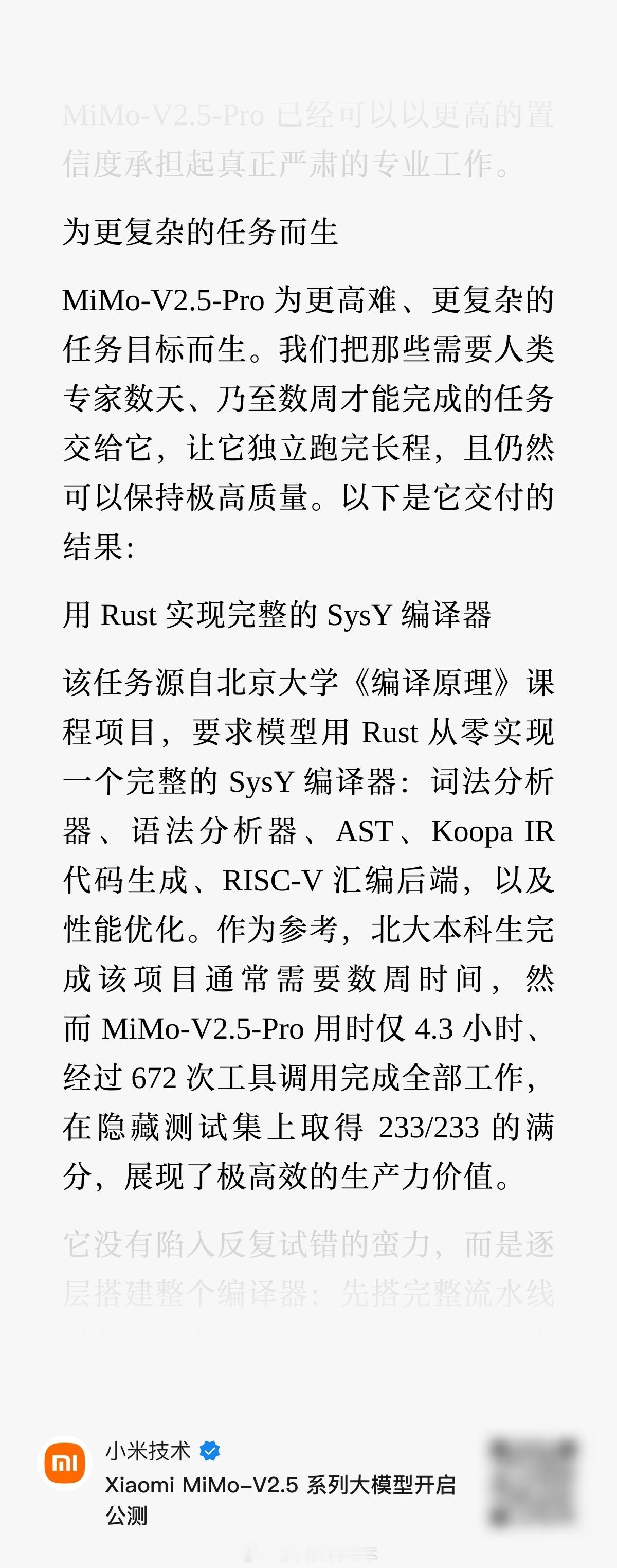 回想过往使用Claude、GPT模型所需的高昂成本,小米直接将顶尖大模型开源共享。