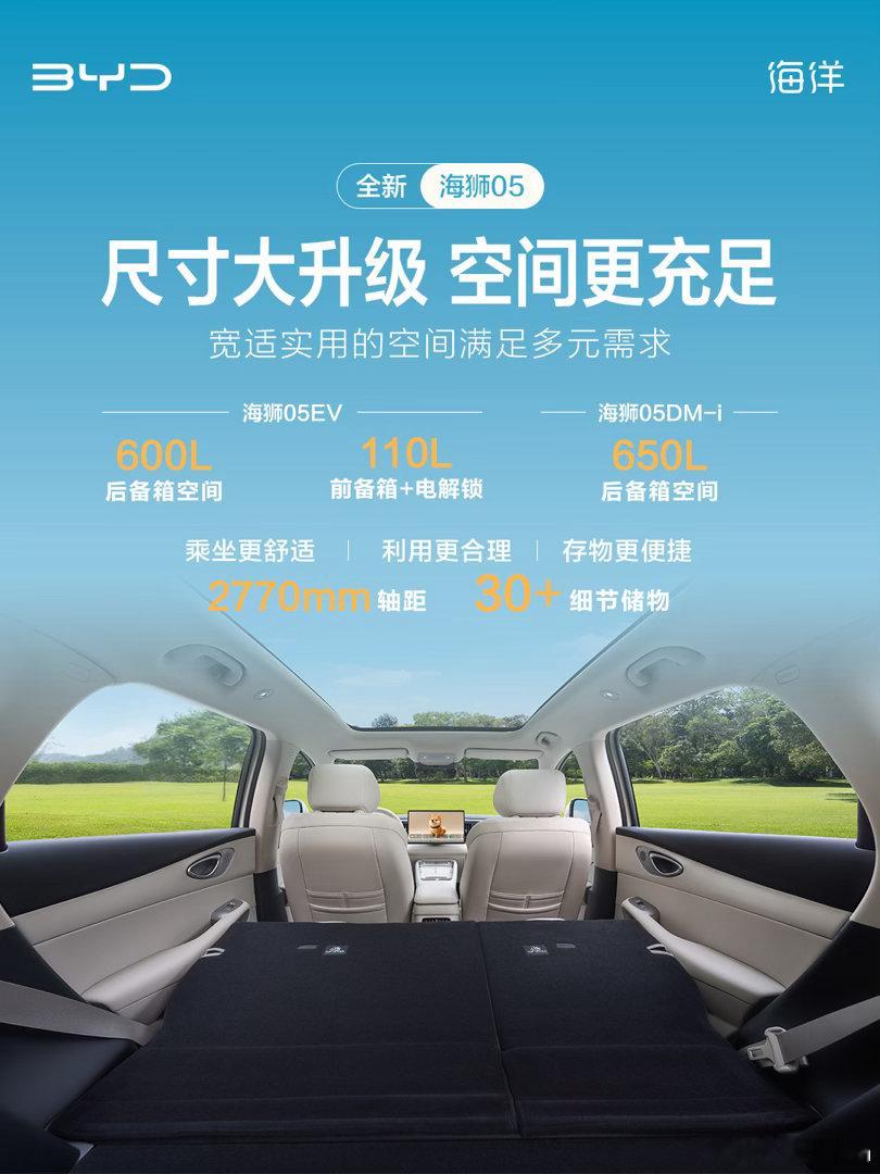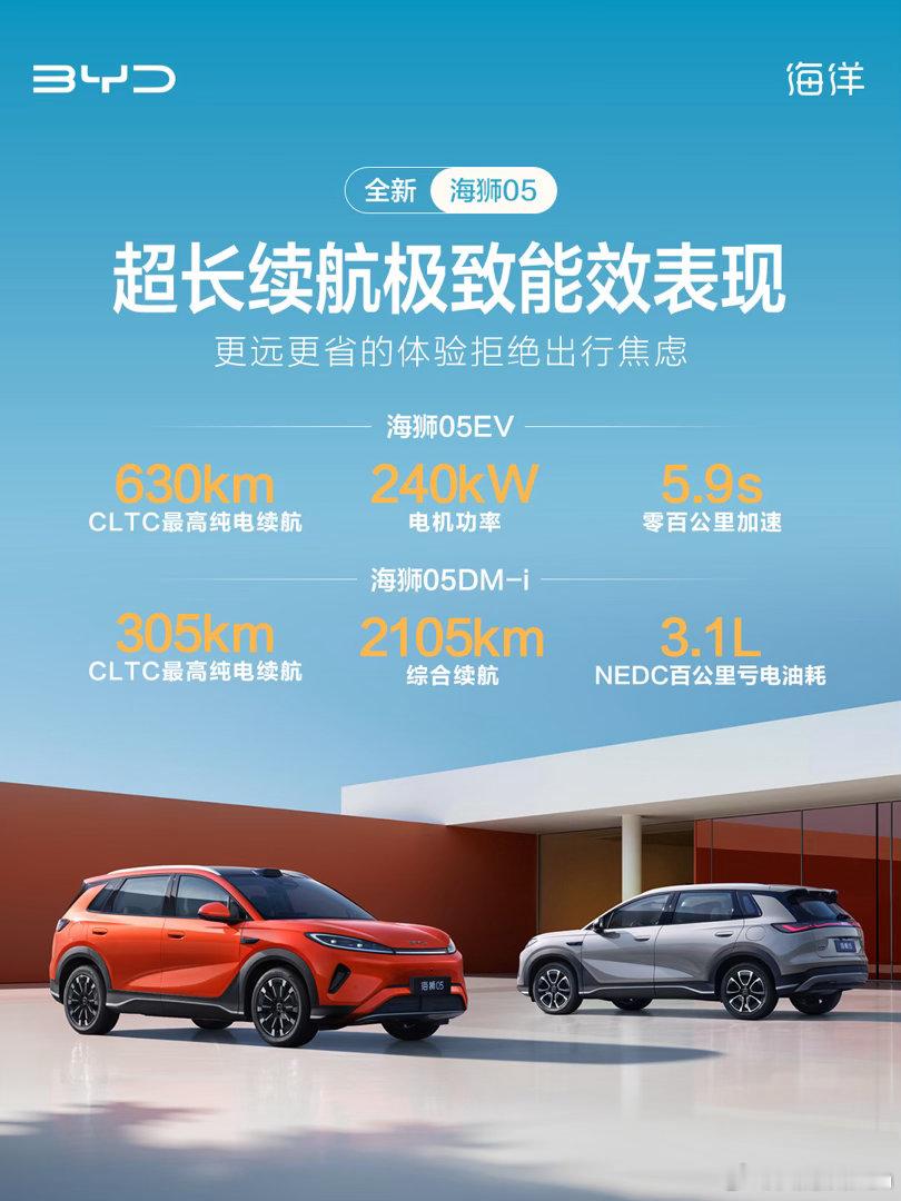 比亚迪海狮05是海洋网旗下都市智趣SUV,于4月20日正式上市,推出DM-i插混、EV纯电两种动力版本,满足不同用户出行需求。其中DM-i版本官方指导价9.79万元-12.79万元,EV版本官方指导价11.99万元-14.59万元。