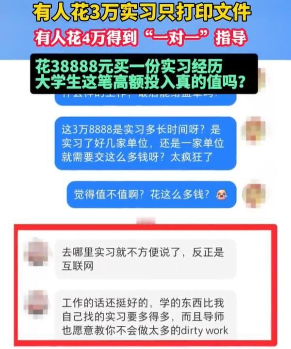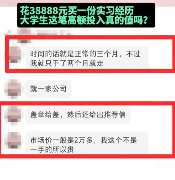 记者在调查中发现,付费买实习已在多个平台形成隐秘的交易链条。在某社交平台搜索“实习内推”“付费实习”等关键词,会出现大量声称可以提供大厂实习机会的卖家。四川某大学生朱朱称,和那些沦为“打杂”的同学不同,他花38888元买来的实习体验“没那么糟糕”,导师不会让他做太多苦差事。“这段实习正常为3个月,我只干了两个月就离开了,单位不仅给盖了章,还出具了推荐信。”他这段在互联网大厂的实习机会是经中介转手获得的,价格远高于市场,“正常价两万元左右。”(齐鲁晚报)