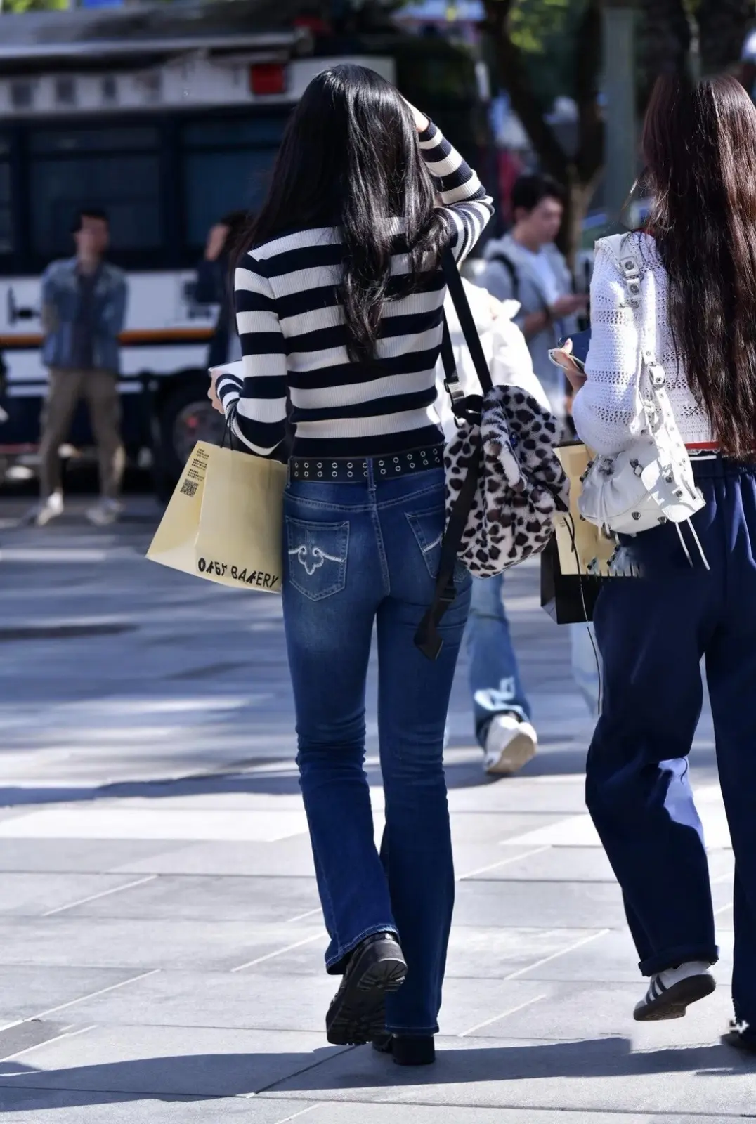 紧身牛仔裤闺蜜街拍ootd街头穿搭姐妹穿搭分享