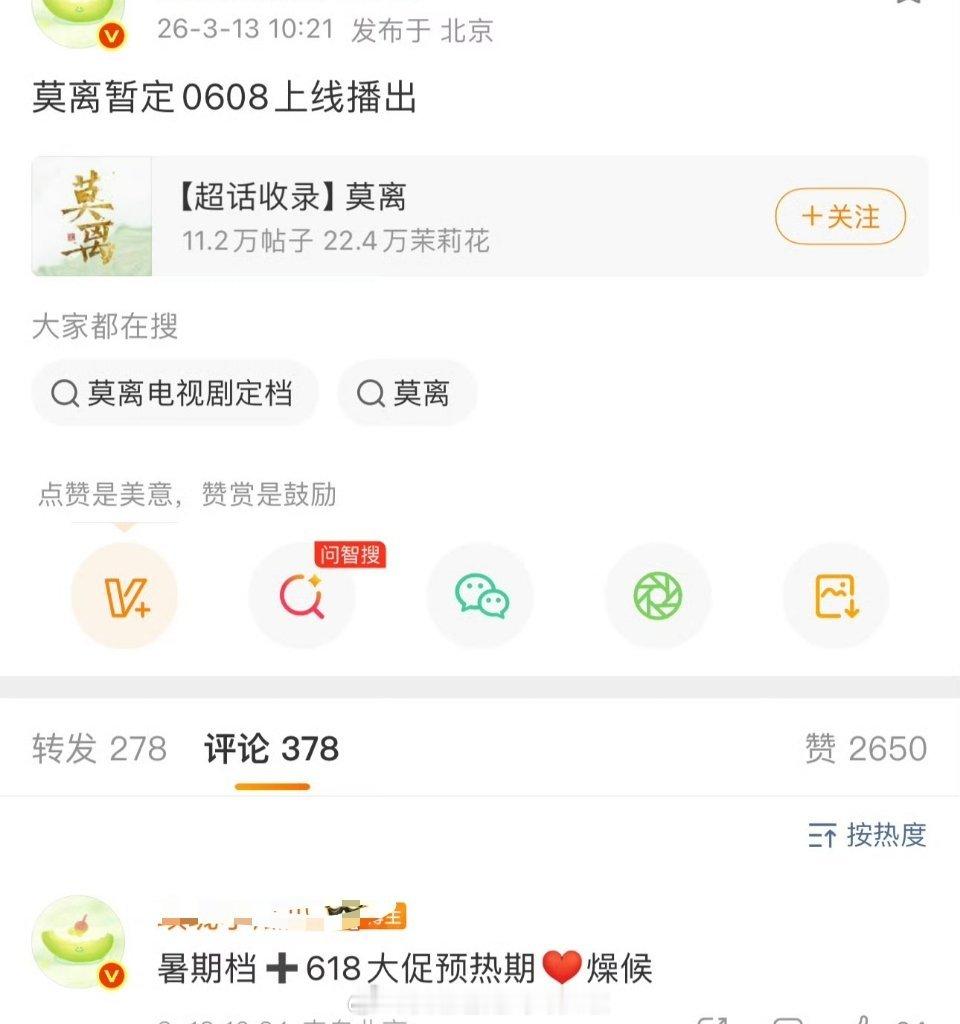 白鹿丞磊《莫离》repo,比较契合名导林玉芬的一贯风格,节奏比较慢,娓娓道来,先婚后爱,缺点就是权谋戏有点无聊瓜主爆料是6月8日🐧上线