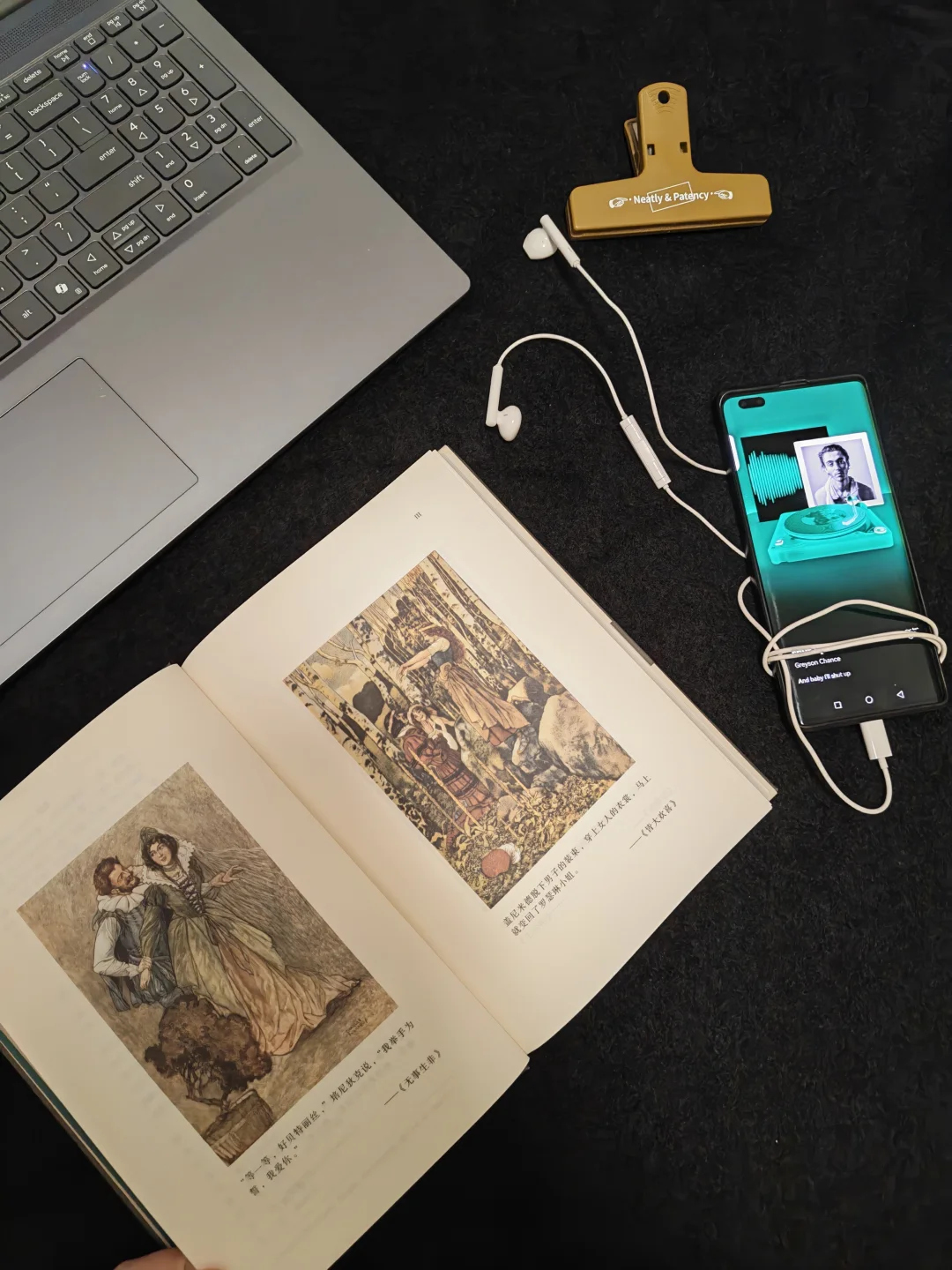 甚至复刻了拉克姆笔下的经典人物剪影,搭配上书籍的封面的颜色复古又高级。