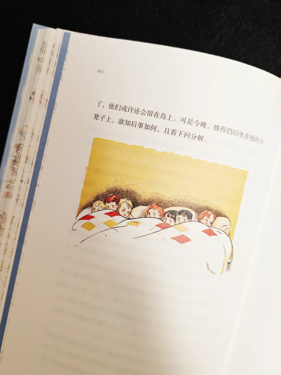 永无岛的冒险小世界,海盗、小人、丛林,还有列队漫步的一只只老虎,沿着整圈书口慢慢铺开,三口刷边连成一整幅完整童话故事。