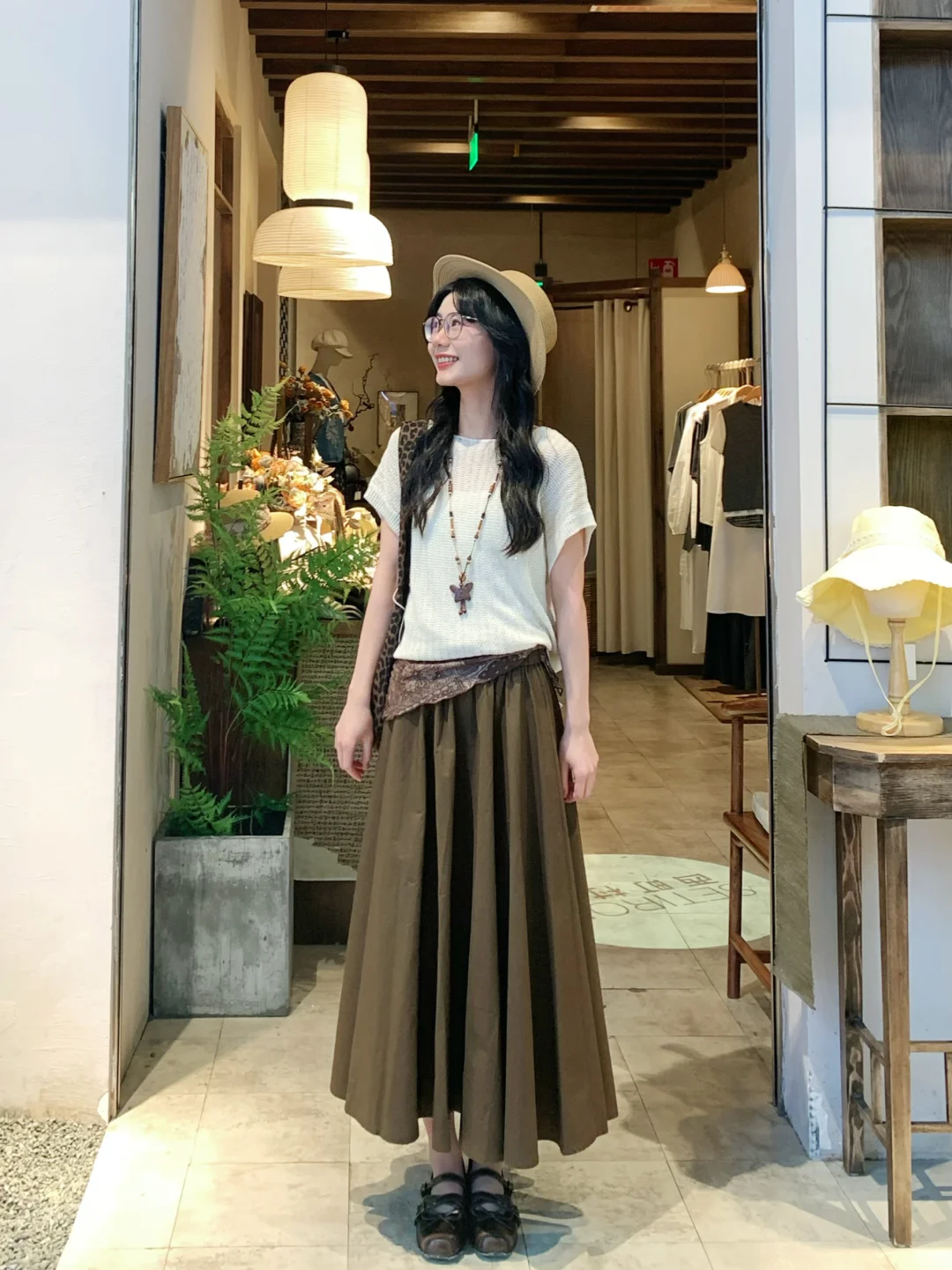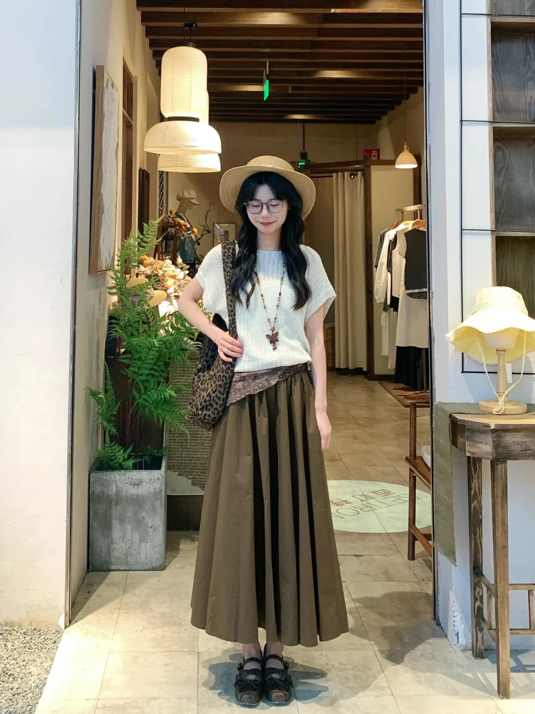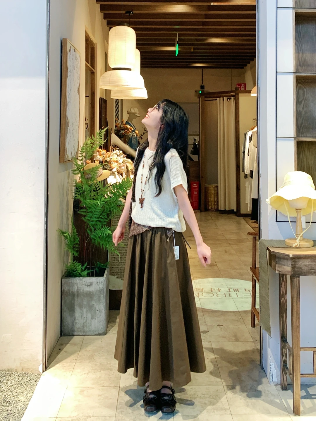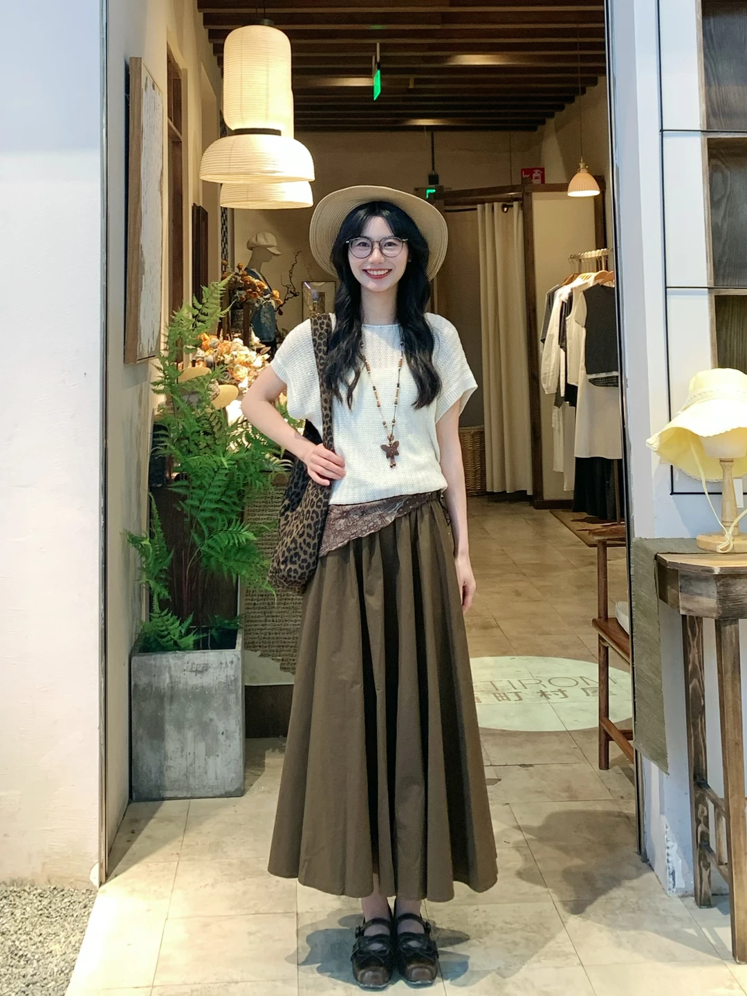 太喜欢这样的松弛感穿搭了,很简约气质!基础款白T、垂感阔腿裤、印花长裙,搭配草