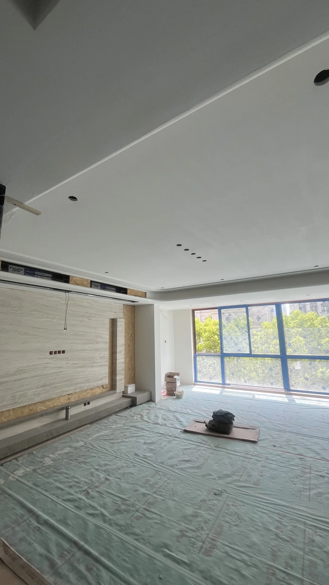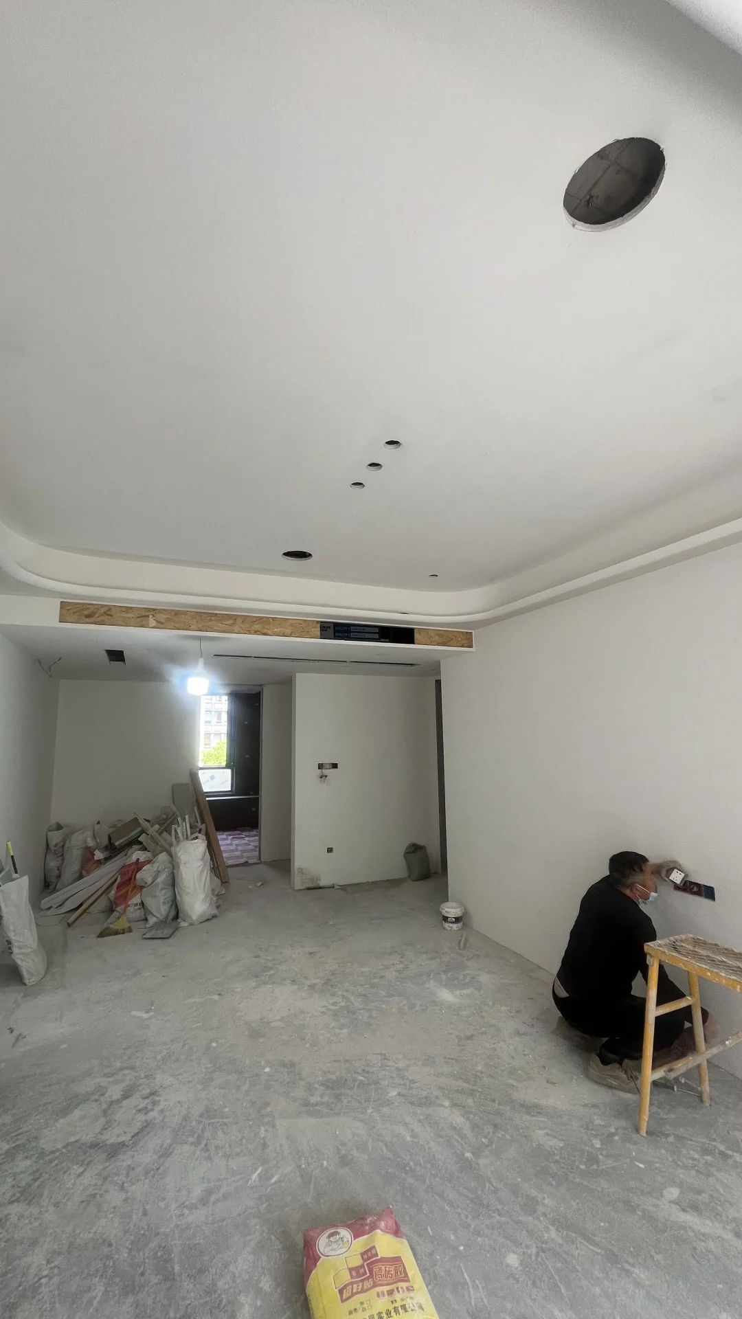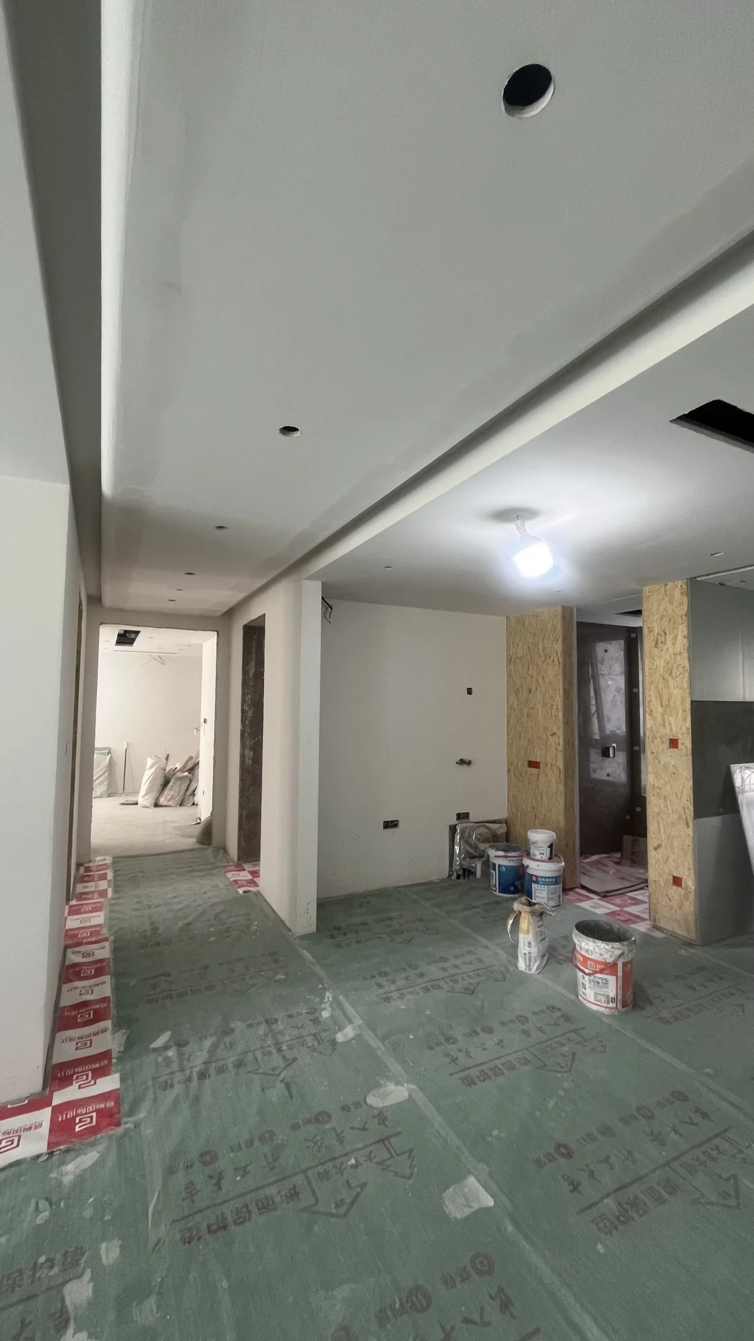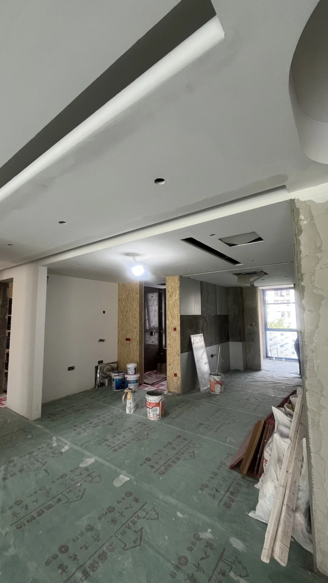 别嫌工地现在灰扑扑的,好看的落地全靠这些看不见的细节撑着: 地面的保护膜、背景墙的基层打底、墙面的找平处理,每一步都得盯得死死的,不然前期偷的懒,后期全是坑! 大平层的通透感,真的从吊顶就开始了! 无主灯+大平顶+柔和圆弧,把客餐厅、走廊这些空间串得特别舒服,越看越开阔,已经开始期待装完灯具和家具的样子了! 有没有云锦东方的业主?来评论区聊聊你们家的装修进度呀~