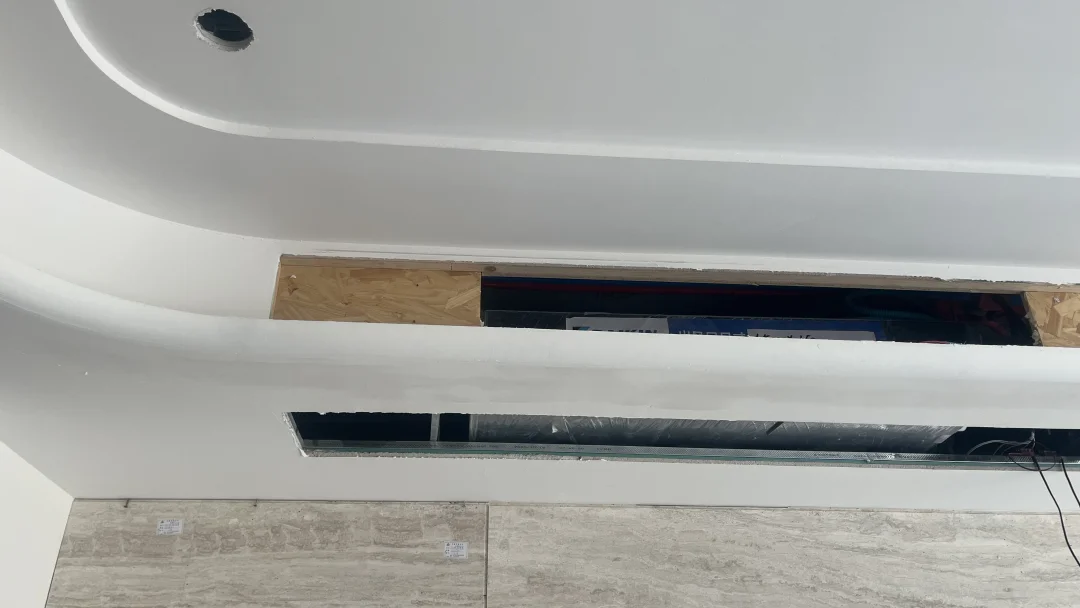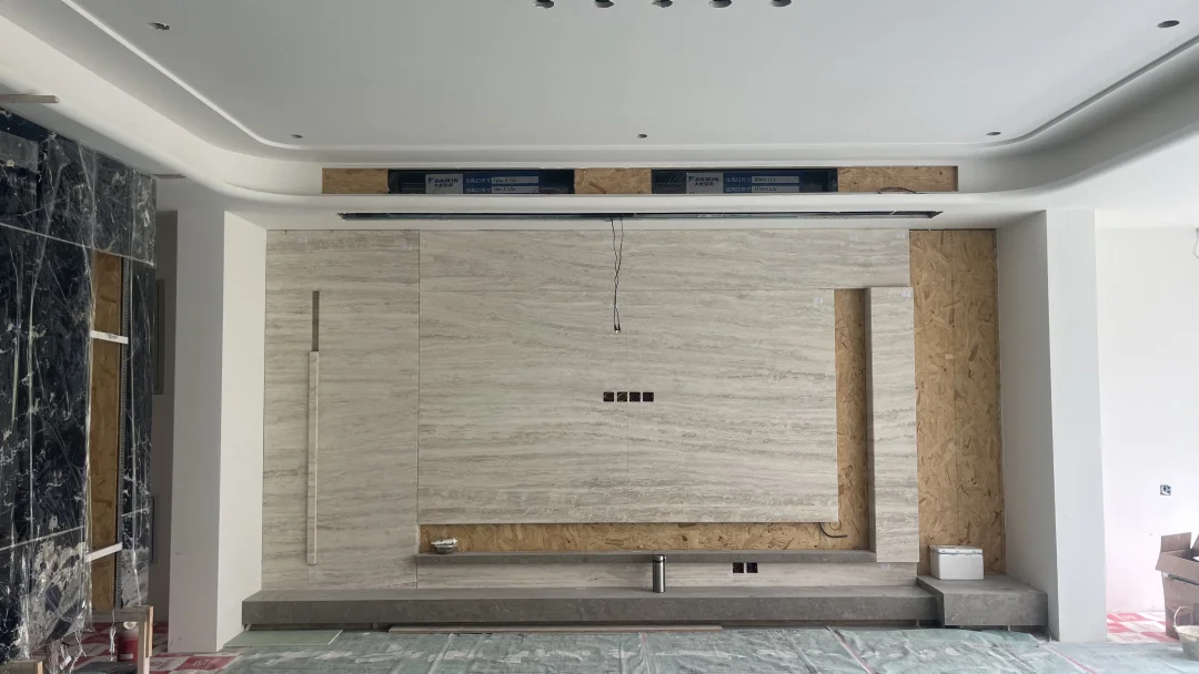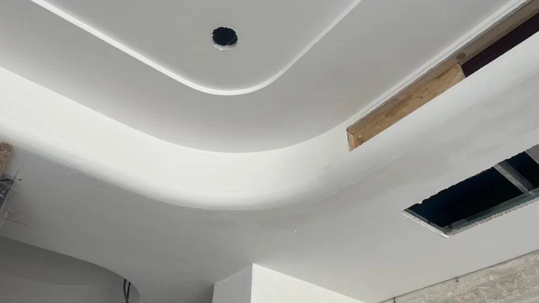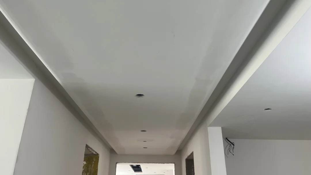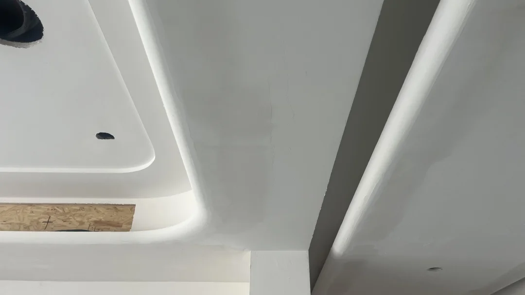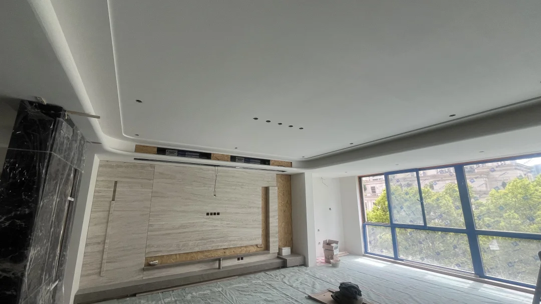 别嫌工地现在灰扑扑的,好看的落地全靠这些看不见的细节撑着: 地面的保护膜、背景墙的基层打底、墙面的找平处理,每一步都得盯得死死的,不然前期偷的懒,后期全是坑! 大平层的通透感,真的从吊顶就开始了! 无主灯+大平顶+柔和圆弧,把客餐厅、走廊这些空间串得特别舒服,越看越开阔,已经开始期待装完灯具和家具的样子了! 有没有云锦东方的业主?来评论区聊聊你们家的装修进度呀~