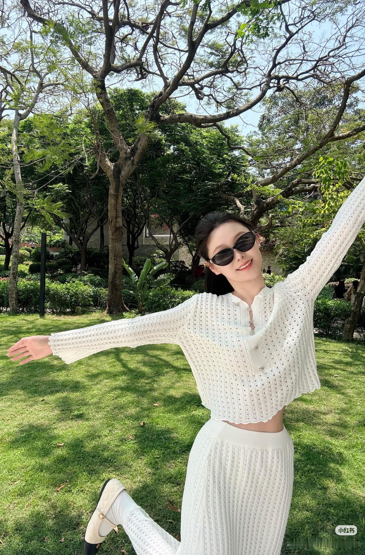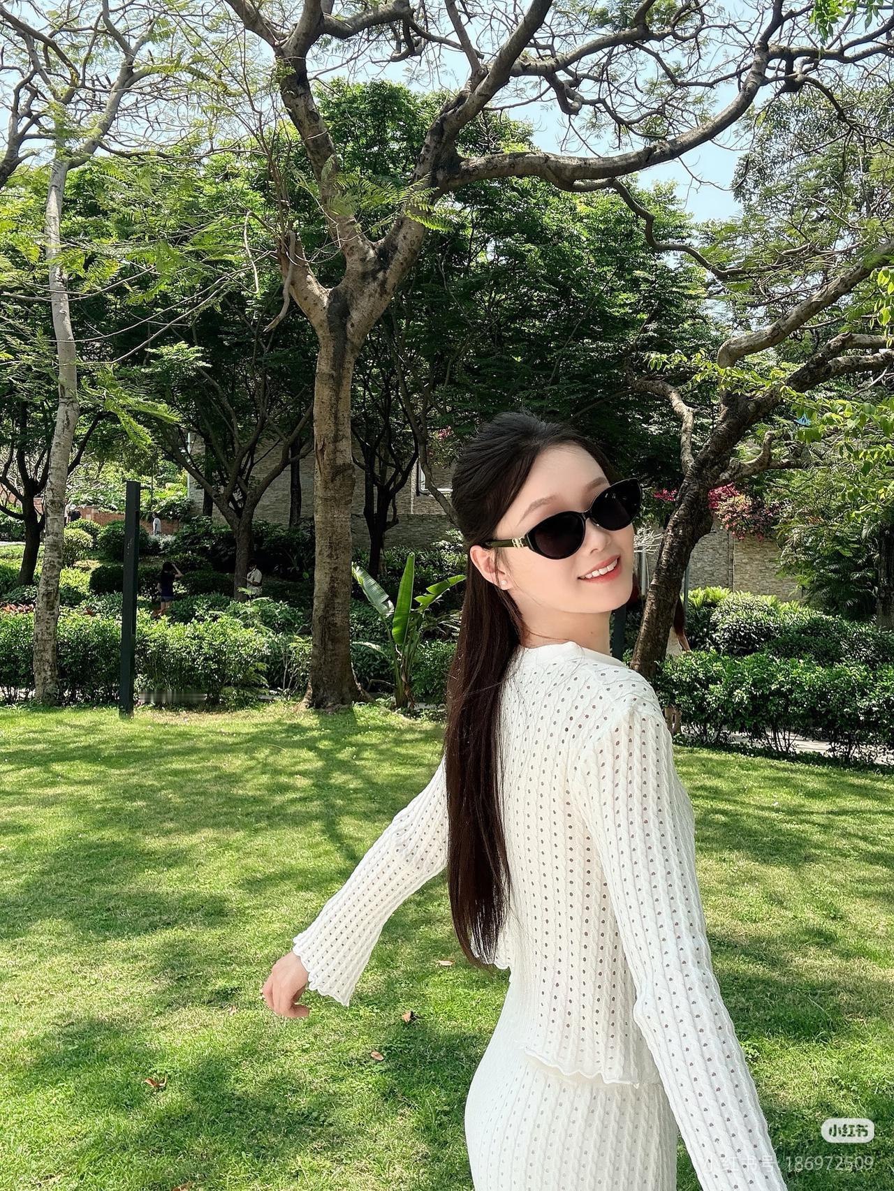 阳光下的少女,微笑倚树旁,花海映笑颜。