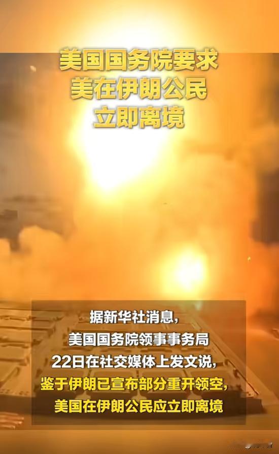 突发!美国紧急喊话:在伊朗公民立即离境⚠️ 突发消息📢!当地时间4月22日,美国国务院领事事务局紧急发文,要求目前在伊朗的美国公民立即离境,局势再添变数。 此次紧急通知,核心原因是伊朗已宣布部分重开领空🇮🇷。美方明确建议,美公民需密切关注当地媒体动态,及时咨询商业航空公司,抓紧搭乘航班撤离。 同时美方给出备选方案,若无法通过航班离境,可通过陆路前往亚美尼亚、阿塞拜疆、土耳其和土库曼斯坦,但严禁前往阿富汗、伊拉克或巴基斯坦与伊朗的接壤地区,警示风险拉满⚠️。 据悉,伊朗民航组织此前已宣布,领空将分四个阶段重新开放,而美方此次紧急撤侨提示,也让外界对美伊局势走向愈发关注。 目前,暂无更多细节披露,后续局势变化,持续跟进! 美国要求公民撤离伊朗 美伊局势最新消息 伊朗领空重开