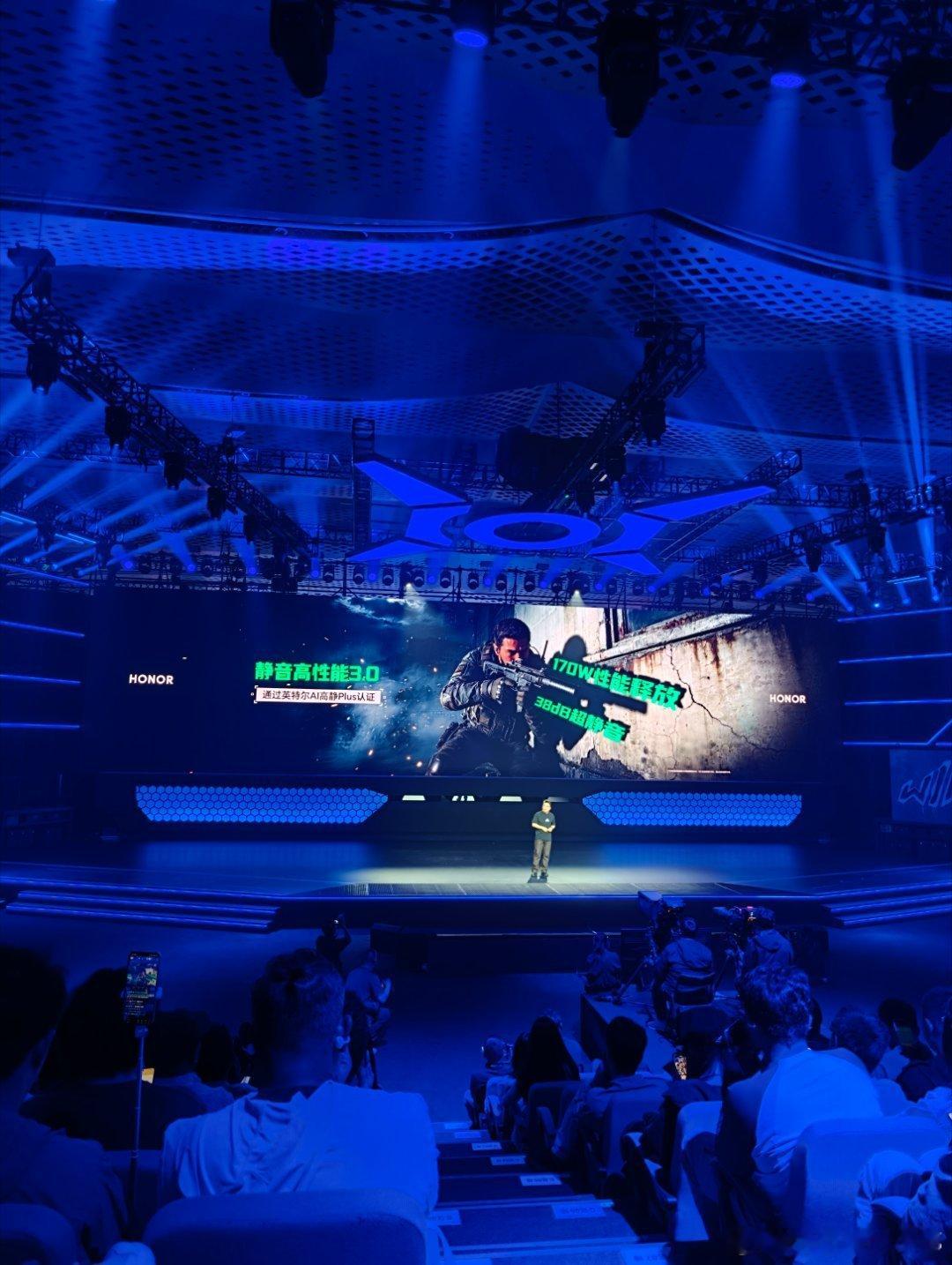 就上了个厕所就来不及跟小姐姐合照了😭那就直接看荣耀自研东风尾喷散热引擎挑战传统散热设计天花板荣耀WIN游戏本 的性能释放突破至270W✌️还搭载静音高性能3.0技术,可在38分贝的低噪音环境下输出170W的强悍性能,即便是室友休息的时候玩儿也不怕了冒个泡荣耀发布会