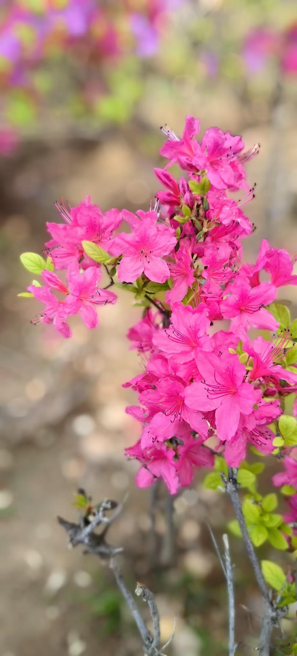 附近一爿写字楼前的花圃里,种了许多杜鹃花,眼见得一年比一年减了规模。此花又叫映山红,想来,更适宜生长在山野间。 杜鹃花开红艳艳,即便三五株,也能把看花人的眼睛点燃。 绕过悲春的杜鹃鸟,上一首美美的映山红。花开看花,无问西东。 映山红 【宋】杨万里 何须名苑看春风,一路山花不负侬。 日日锦江呈锦样,清溪倒照映山红。