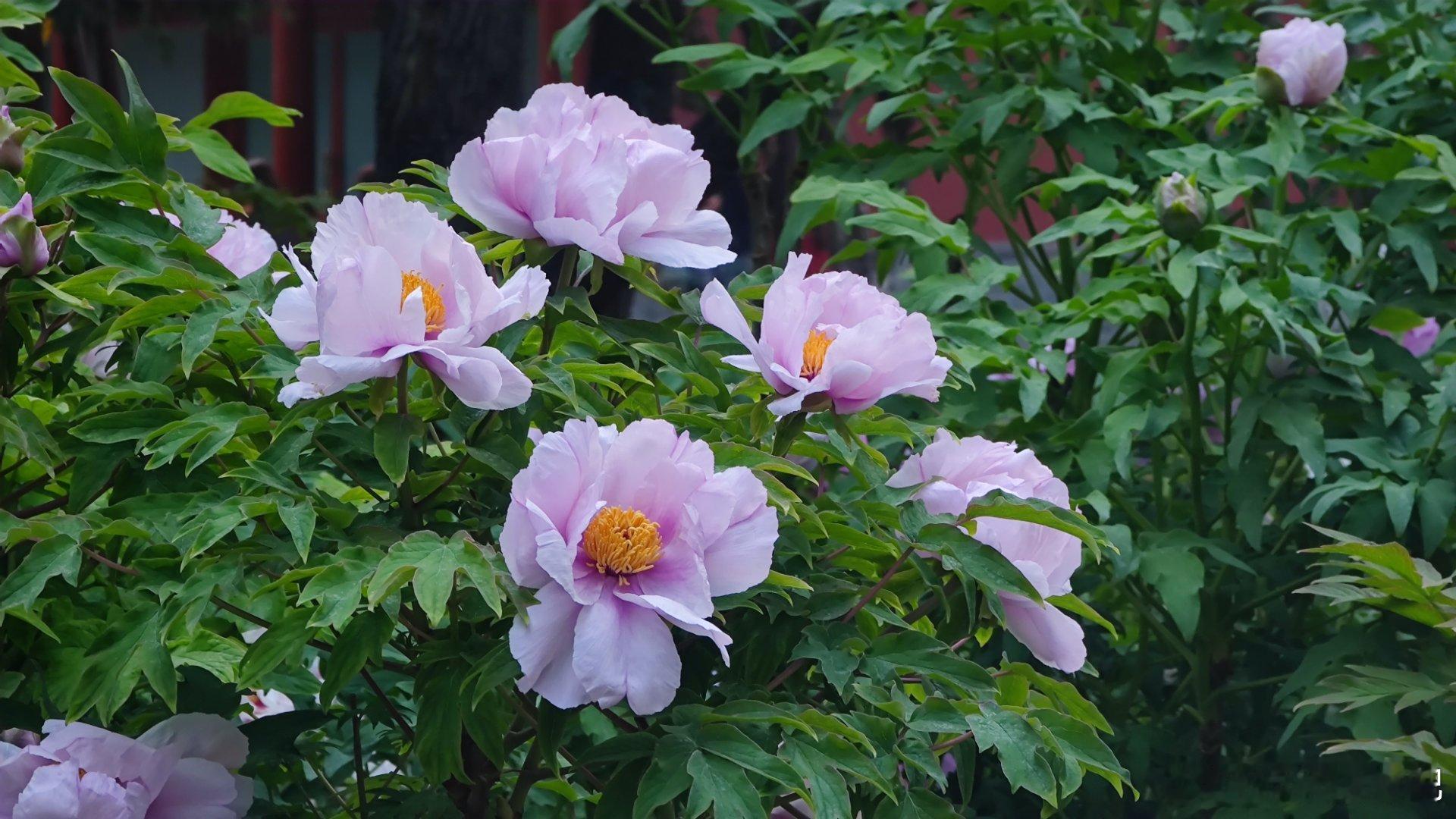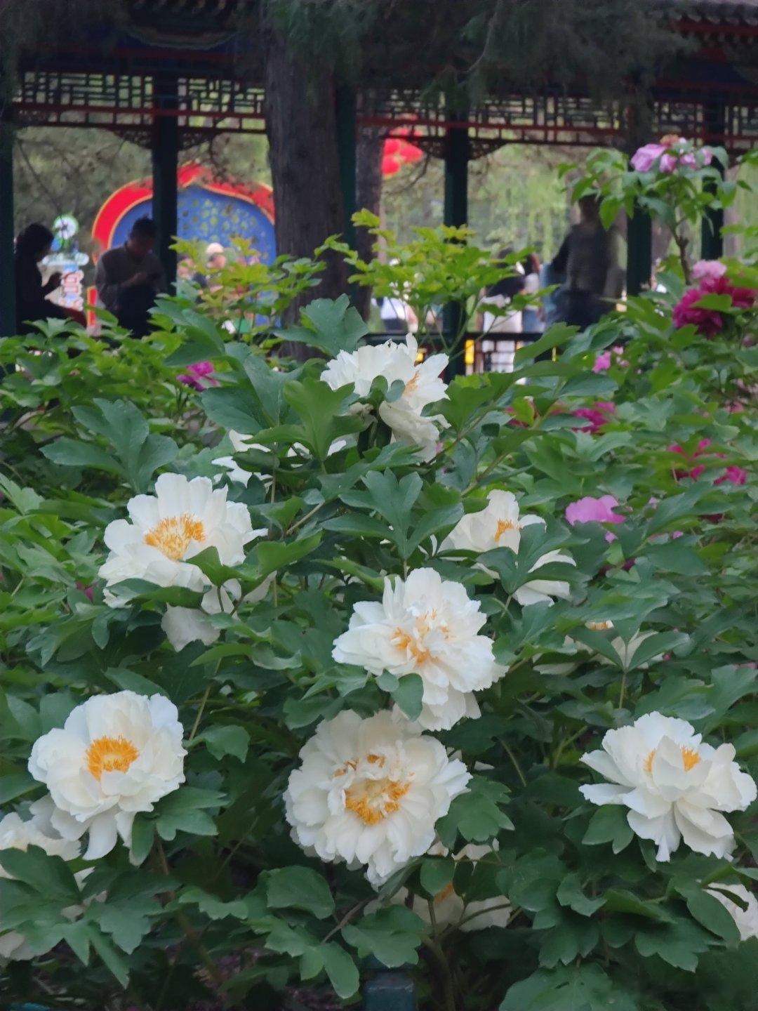北海公园 快雪堂 牡丹花开摄影